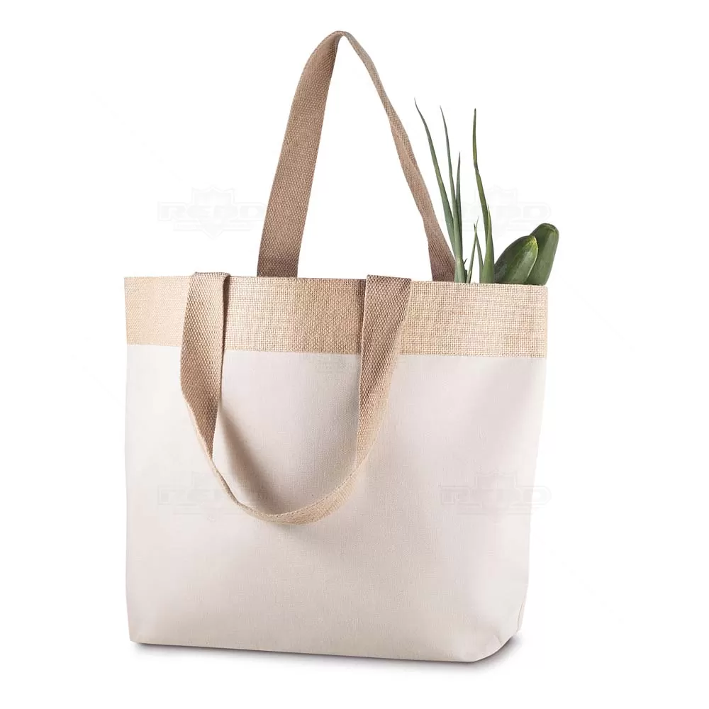 Confeccionada em algodão cru de 220gm², esta sacola se destaca pelo elegante detalhe em juta, que agrega um toque rústico e sofisticado ao seu design. Robusta e espaçosa, conta com base plana que proporciona maior estabilidade e melhor aproveitamento interno, ideal para transportar itens variados com segurança e praticidade. As alças reforçadas em juta garantem conforto ao carregar, tanto na mão quanto no ombro, além de complementar o visual sustentável da peça. A combinação dos materiais naturais valoriza ainda mais a proposta ecológica, tornando-a uma excelente opção para quem busca alternativas conscientes e funcionais. Este modelo é perfeito para ações promocionais, brindes corporativos, campanhas ecológicas, feiras e eventos, fortalecendo a imagem da sua marca de maneira elegante e alinhada às práticas sustentáveis.