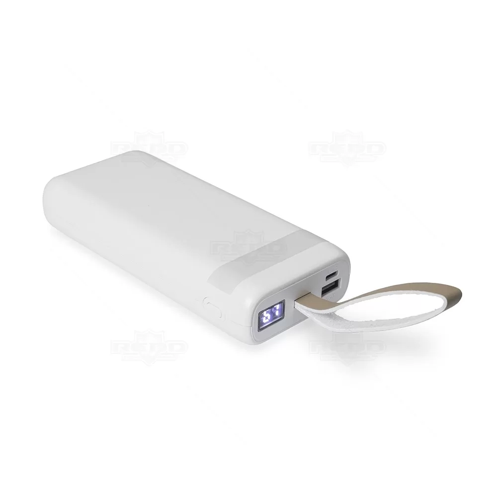 Com design moderno e acabamento em plástico resistente, este power bank é uma solução prática e robusta para recargas em movimento. Com impressionante capacidade de 20.000mAh, permite múltiplas recargas completas de dispositivos como smartphones, tablets e acessórios eletrônicos. Possui quatro cabos embutidos com conectores Lightning, USB-C, Micro-USB e USB, oferecendo ampla compatibilidade com diferentes aparelhos. Conta ainda com duas entradas para recarga do próprio dispositivo (USB-A e USB-C), painel digital com visor em LED numérico para indicar o nível de carga, lanterna frontal integrada e alça fixa em couro sintético para facilitar o transporte. Acompanha também um cabo adicional USB-C. Pela alta capacidade, variedade de conexões e recursos extras, é uma excelente opção de brinde promocional de alto valor percebido, ideal para ações com foco em tecnologia, eventos corporativos ou campanhas voltadas a públicos que valorizam praticidade e conectividade em qualquer lugar.