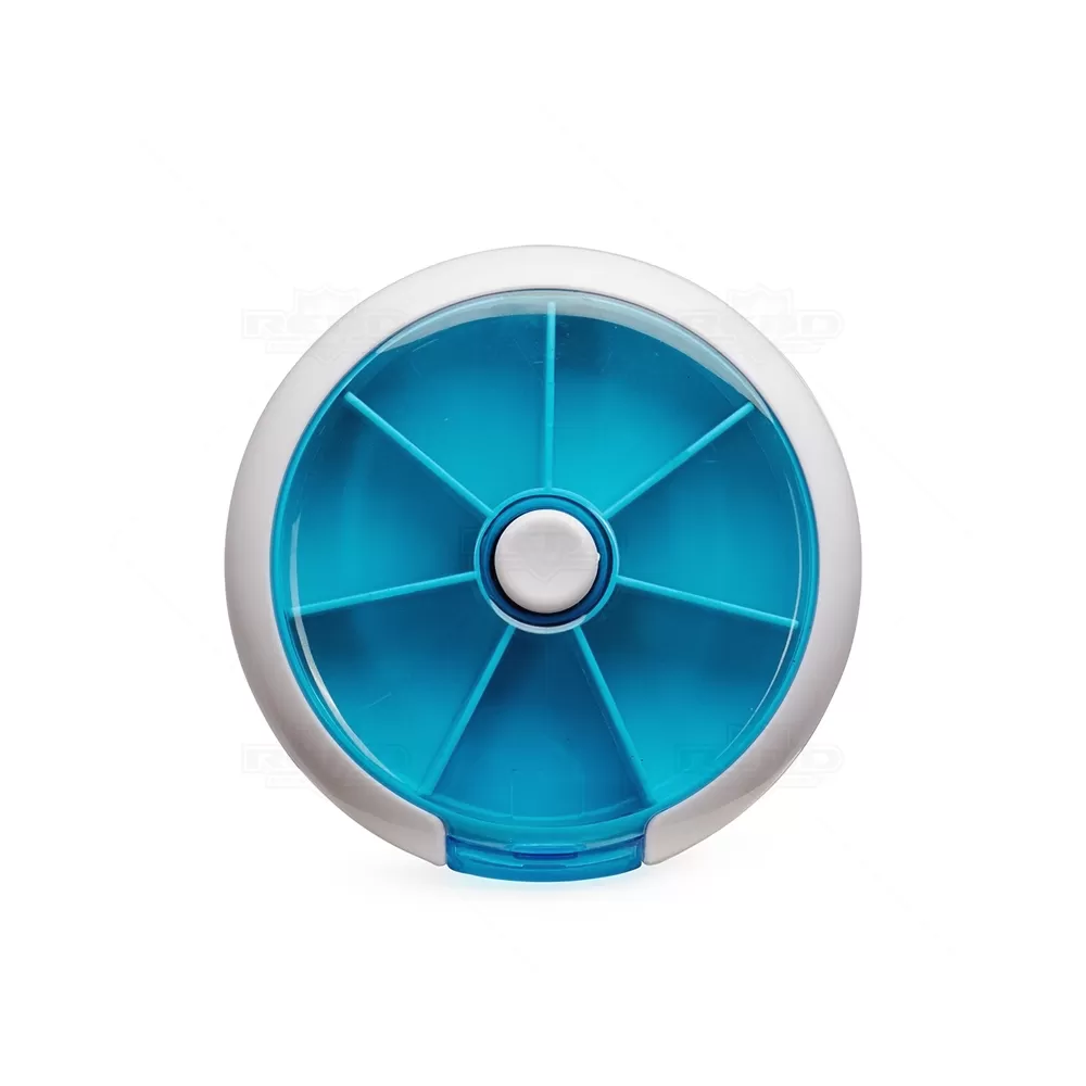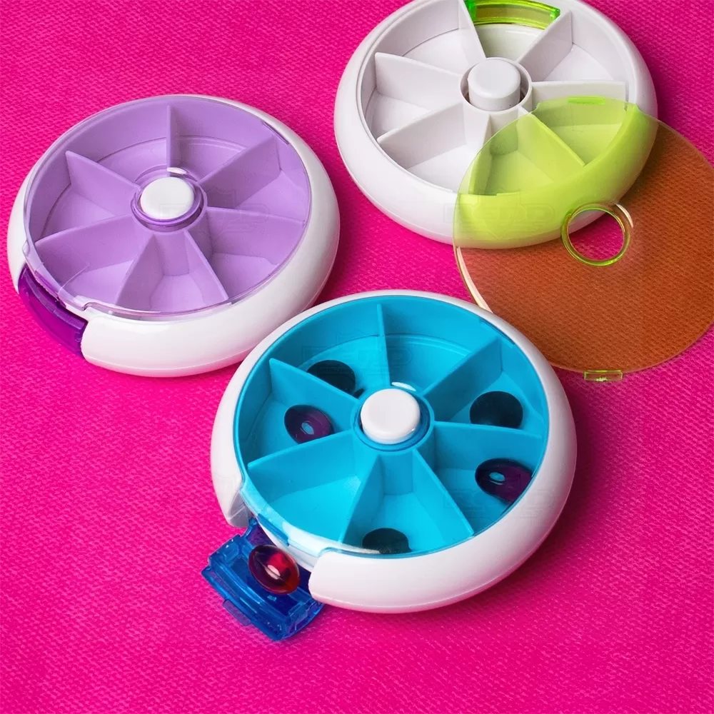 Prático e funcional, este porta-comprimidos redondo é produzido em plástico resistente e possui um design compacto ideal para o uso diário. Conta com sete divisórias internas, pensadas para organizar a medicação da semana de forma eficiente. Seu grande diferencial é o botão central de acionamento: a cada clique, um novo compartimento é rotacionado para a posição de abertura, permitindo acesso direto à dose do dia pela lateral. Esse sistema facilita o controle do consumo de medicamentos e evita erros na rotina de uso. A tampa colorida translúcida permite visualização dos itens sem precisar abrir o estojo por completo. Compacto e fácil de transportar, é ideal para ser levado em bolsas, mochilas ou nécessaires, acompanhando o usuário em casa, no trabalho ou em viagens. Uma excelente opção de brinde personalizado para campanhas de saúde, ações corporativas e eventos promocionais com foco em bem-estar e organização pessoal.