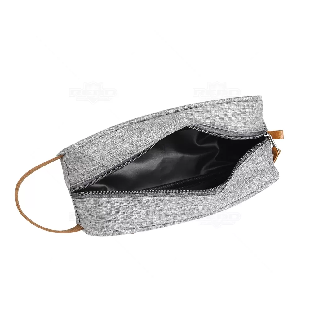 A nécessaire é confeccionada em poliéster resistente e conta com acabamentos sofisticados em couro sintético, que conferem um visual moderno e elegante. Seu design prático inclui dois compartimentos com zíper, ideais para organizar itens de higiene pessoal, maquiagem ou acessórios diversos com total segurança. A alça lateral facilita o transporte, permitindo que o produto seja carregado com conforto em viagens, academias ou no uso diário. O interior com forro impermeável garante proteção contra vazamentos e facilita a limpeza, aumentando a durabilidade do item. A estrutura compacta e funcional se adapta facilmente a malas ou mochilas, otimizando o espaço sem abrir mão da organização. Além disso, o painel externo com detalhe em material sintético é ideal para aplicação de logotipos, o que valoriza ainda mais sua utilização como brinde promocional. Por ser útil, versátil e visualmente atraente, essa nécessaire é perfeita para ações corporativas, eventos de relacionamento ou campanhas de fidelização.