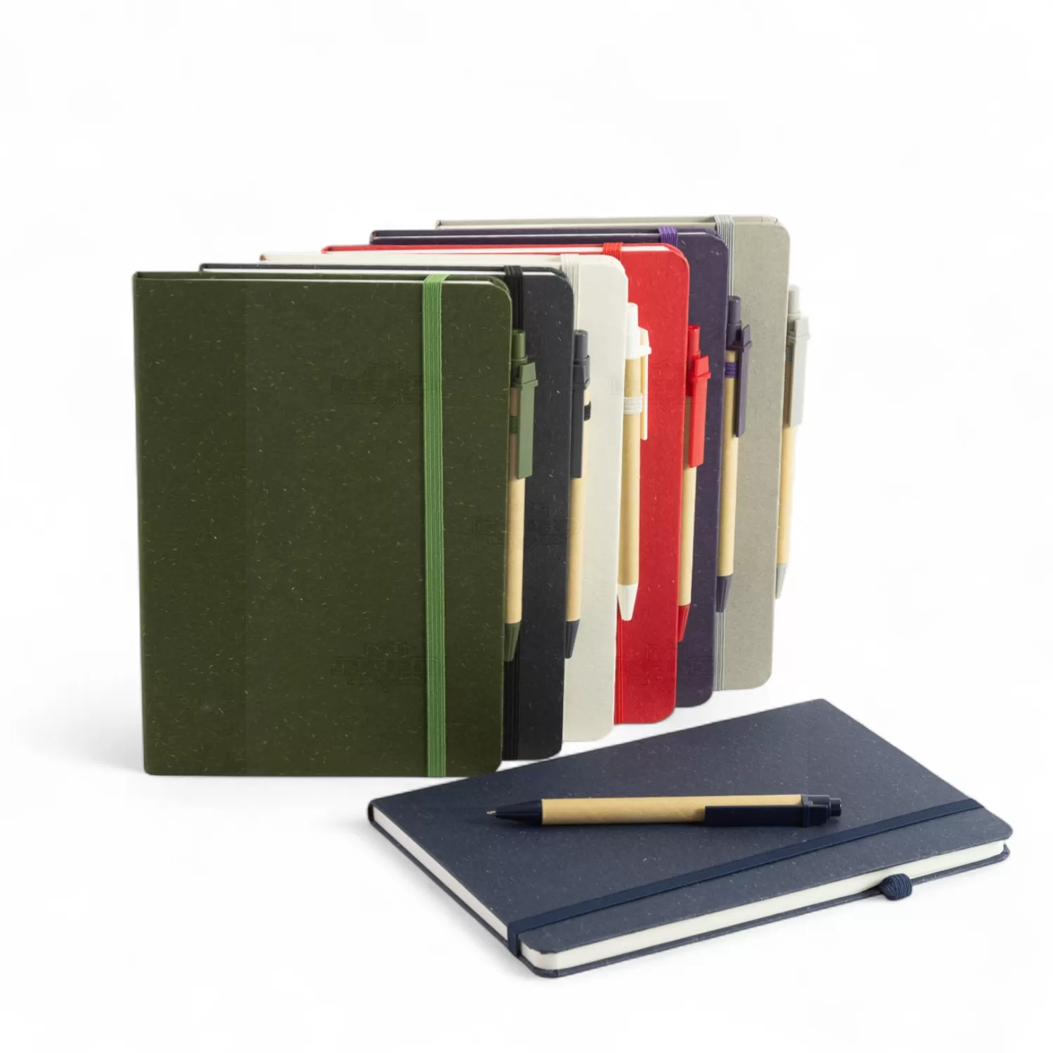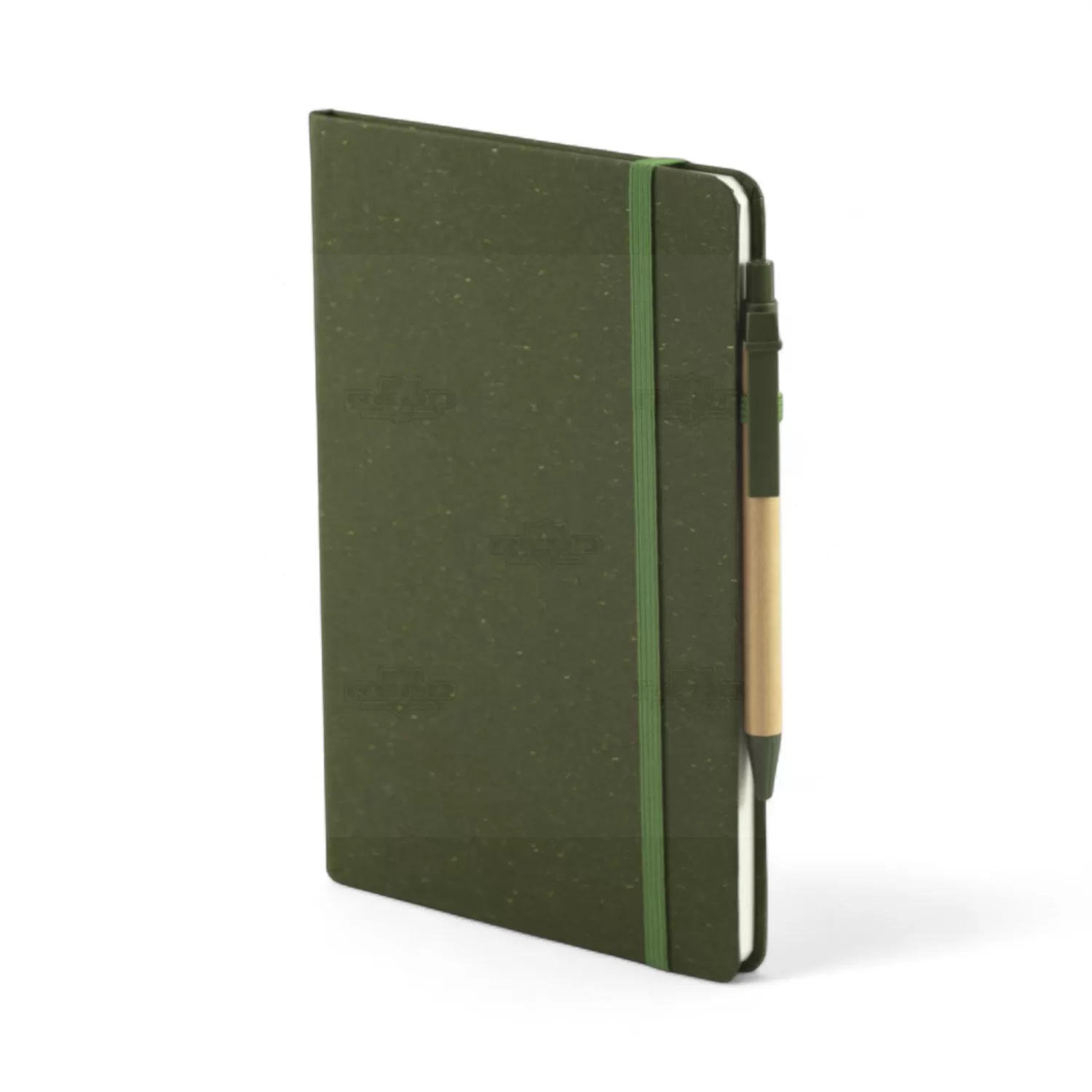 Com capa rígida feita em fibra da palha de arroz, este bloco oferece uma alternativa sustentável e elegante para o dia a dia. Seu interior contém aproximadamente 80 folhas na cor marfim, todas pautadas, ideais para anotações, planejamentos ou registros diversos. O design inclui elástico para fechamento, proporcionando segurança no transporte, além de um suporte lateral em elástico que acomoda a caneta de forma prática. Acompanha uma caneta esferográfica com corpo em papelão reciclado e detalhes em plástico, escrita azul de 1,0 mm e acionamento por clique, reforçando a proposta ecológica do conjunto. Disponível em várias cores, o bloco combina funcionalidade e apelo visual, sendo uma escolha atrativa para quem valoriza organização com consciência ambiental. Por sua apresentação completa e estilo discreto, é uma excelente opção de brinde personalizado para eventos corporativos, campanhas promocionais ou ações que buscam destacar o compromisso da marca com a sustentabilidade.
