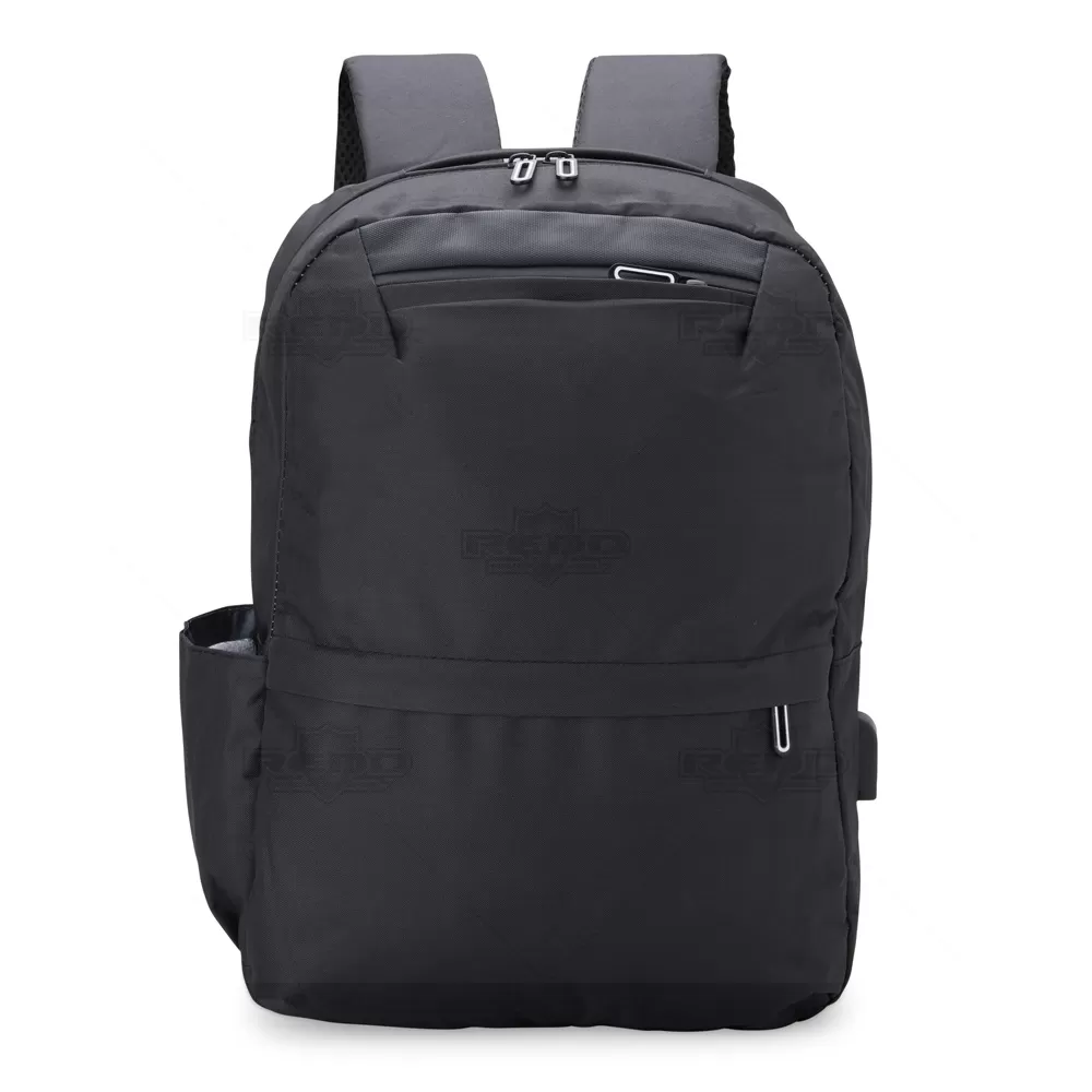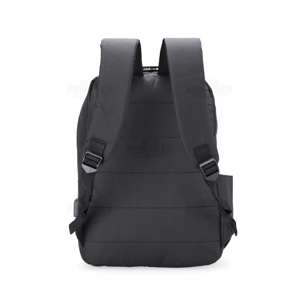 Fabricada em nylon resistente, esta mochila oferece praticidade e durabilidade para o dia a dia. Com capacidade de 24 litros, possui três compartimentos espaçosos, sendo o principal com divisória acolchoada para notebook de até 14 polegadas. Os zíperes duplos garantem fácil acesso aos itens, enquanto o bolso frontal e o bolso lateral permitem organização eficiente de objetos menores e garrafas. As alças são acolchoadas e ajustáveis, proporcionando conforto mesmo em longos períodos de uso. O destaque fica por conta da entrada USB externa, que possibilita carregar dispositivos móveis com praticidade, desde que conectada a um power bank interno (não incluso). Ideal para estudantes, profissionais e quem busca uma solução funcional para o transporte seguro de eletrônicos e objetos pessoais. A proposta moderna e funcional faz desta mochila uma excelente escolha como brinde personalizado para ações promocionais, eventos corporativos e campanhas que valorizam utilidade e estilo no dia a dia do público-alvo.