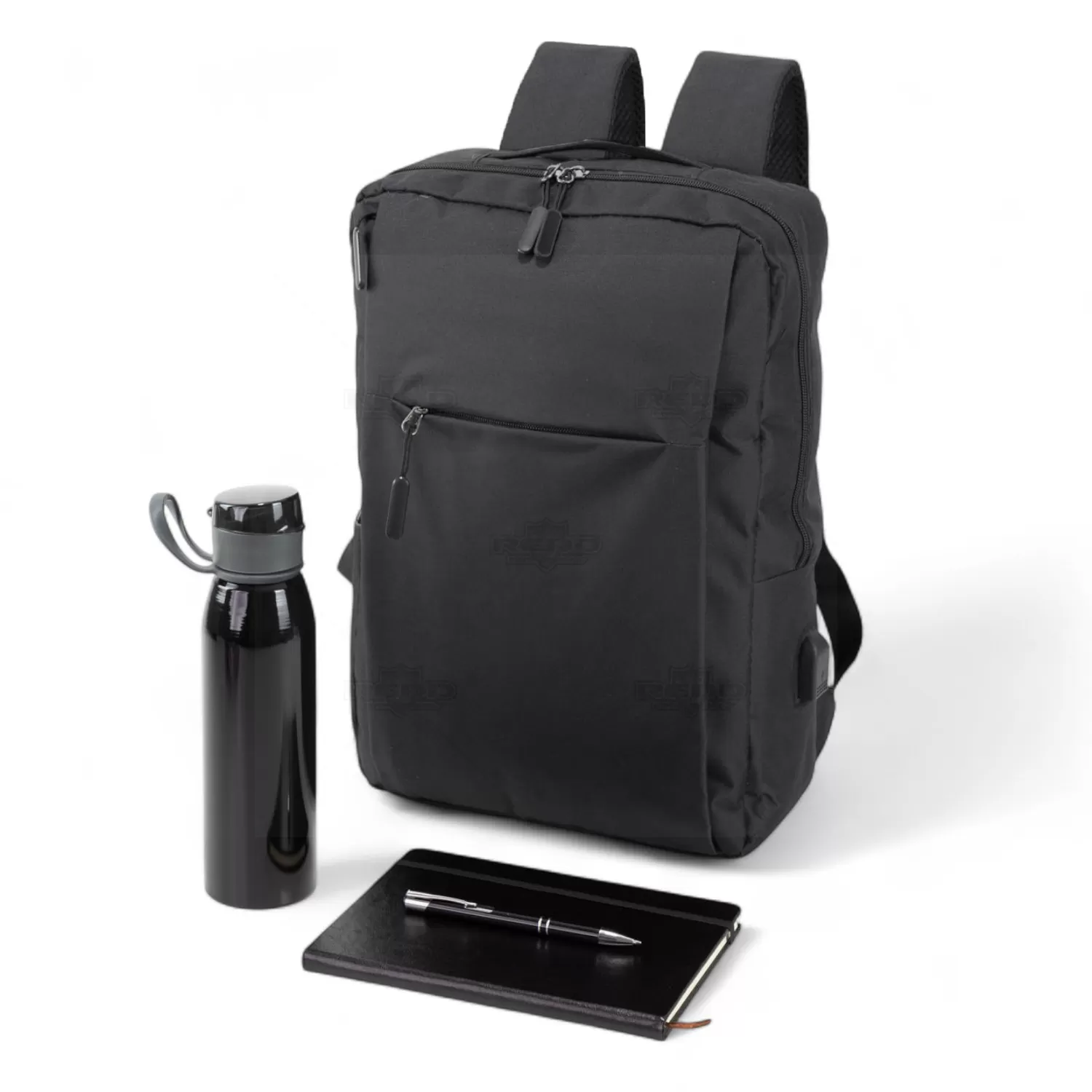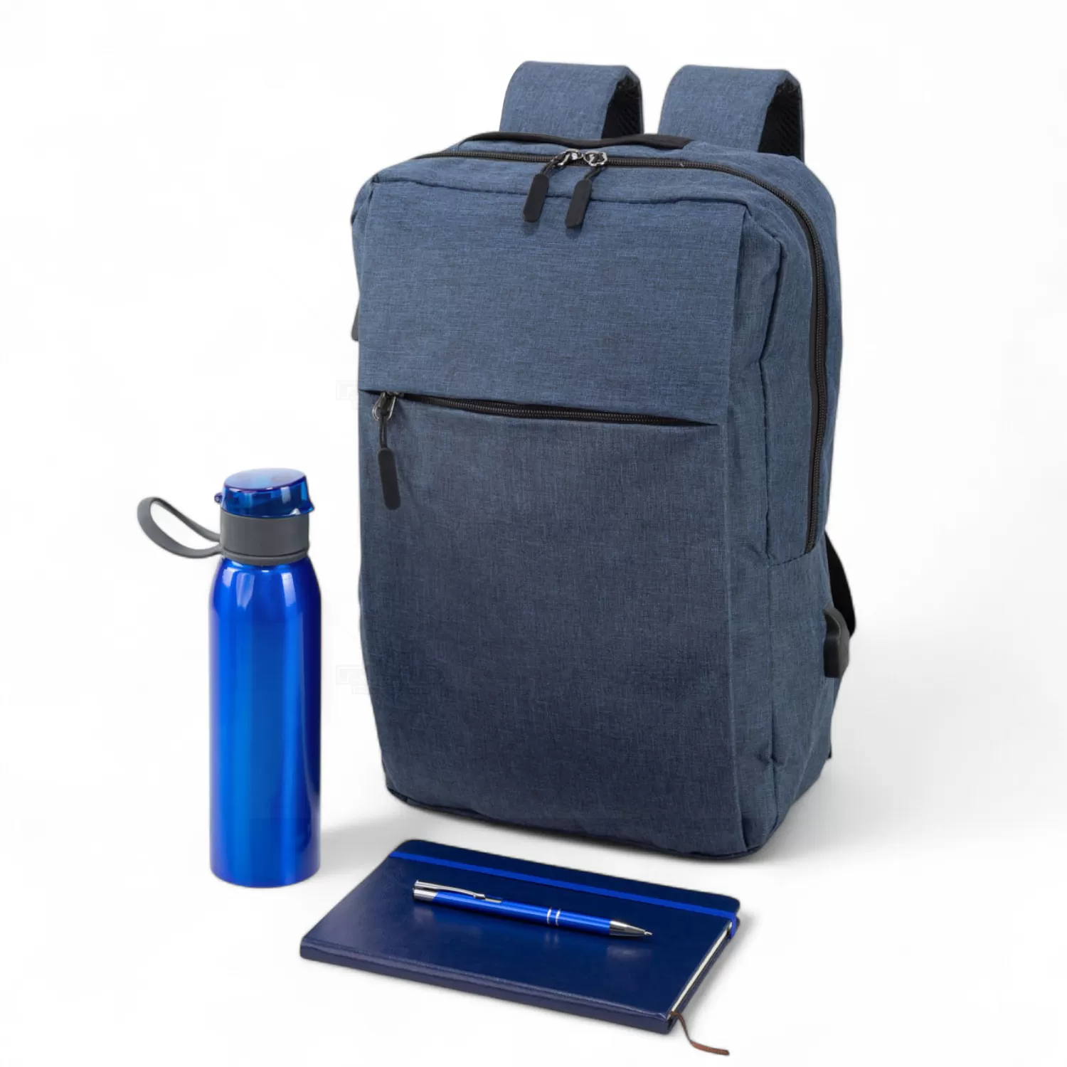 O Kit Integração Onboarding Personalizado é composto por itens funcionais e modernos, ideais para o ambiente corporativo. A mochila (MC503) em poliéster resistente possui design compacto com compartimento acolchoado para notebook, bolsos com zíper, suporte para canetas, conector USB externo e alça para acoplagem em malas, garantindo praticidade e proteção durante a rotina. O bloco de anotações (CAD39) com capa dura em couro sintético e cerca de 78 folhas bege não pautadas oferece sofisticação para o registro de ideias, com fechamento em elástico e marcador de página em nylon. A caneta de metal (CM07) com dois anéis prateados e escrita azul proporciona um toque de elegância e excelente desempenho na escrita. Para completar, o squeeze de metal (SQ70) com capacidade de 650ml conta com tampa protetora, bico com anel de vedação e alça lateral flexível, ideal para manter a hidratação ao longo do dia. É uma excelente opção de brinde personalizado para ações de boas-vindas, integração de equipes e eventos empresariais.