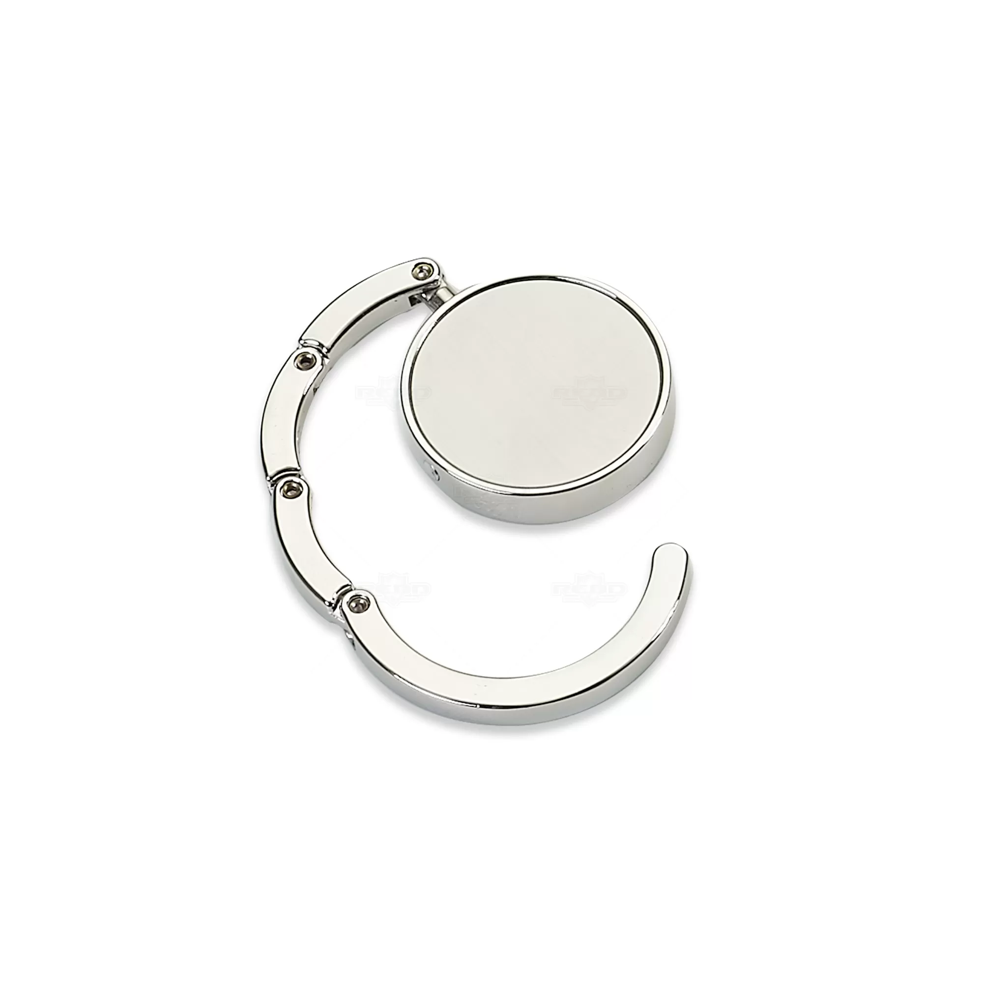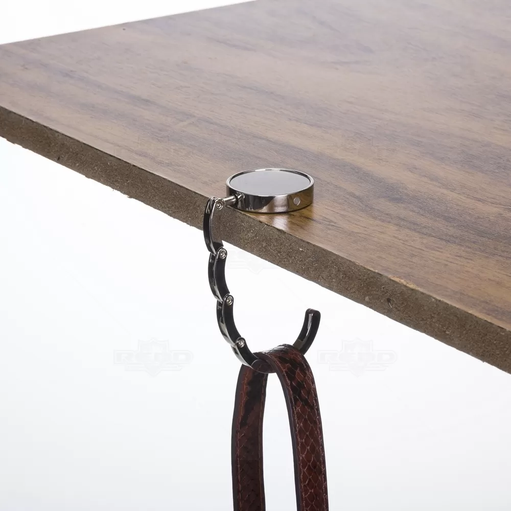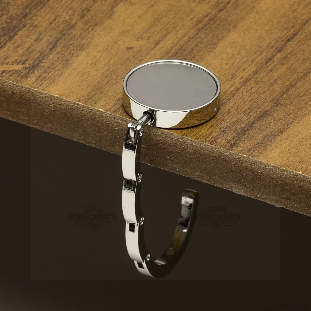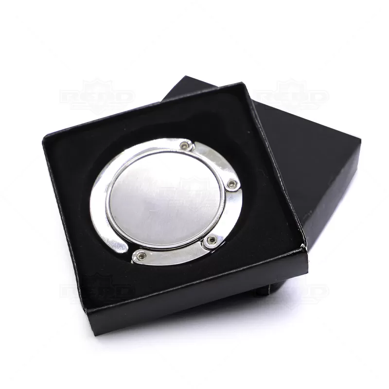 O porta bolsa de metal dobrável é um acessório prático e elegante, ideal para quem deseja manter bolsas seguras e ao alcance em ambientes como cafés, restaurantes ou escritórios. Com design compacto, ele possui uma chapa central redonda perfeita para personalização por meio de gravação, o que o torna também uma excelente opção para brindes corporativos. Sua estrutura metálica resistente garante durabilidade, enquanto a parte traseira com acabamento em borracha antiderrapante oferece firmeza ao ser apoiado em superfícies, evitando deslizamentos e quedas. O mecanismo de abertura é simples e funcional: basta puxar a lateral imantada para que o gancho se desdobre e o suporte fique pronto para uso. Pequeno e leve, cabe facilmente em bolsas, mochilas ou até bolsos, sendo ideal para quem está sempre em movimento. É especialmente útil para manter a bolsa longe do chão, promovendo praticidade, higiene e segurança no dia a dia.