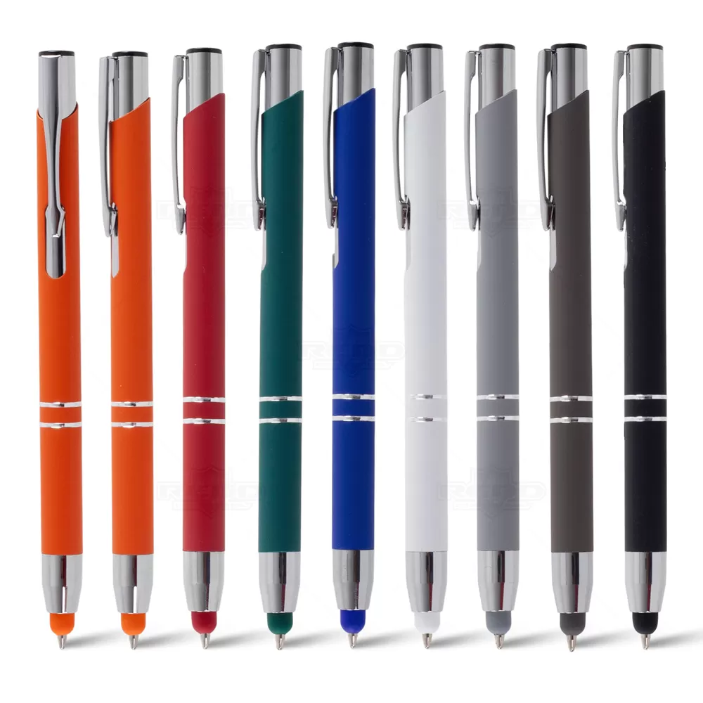 Com design moderno e acabamento sofisticado, esta caneta esferográfica combina funcionalidade e estilo em um único acessório. Produzida em metal resistente, conta com carga azul de 1.0 mm e acionamento por clique, oferecendo escrita suave e precisa para o uso diário. A ponteira inferior possui acabamento emborrachado que funciona como caneta touch, ideal para uso em telas sensíveis, como smartphones e tablets. Detalhes cromados no clip, anéis e extremidades valorizam a estética da peça e conferem um ar executivo ao produto. Disponível em diferentes cores, adapta-se a diversos estilos e preferências. Seu formato ergonômico proporciona conforto mesmo em longos períodos de uso, tornando-se um item funcional e elegante. Por sua versatilidade e visual refinado, é uma excelente opção de brinde personalizado para ações promocionais, eventos corporativos ou kits de boas-vindas, agregando valor à marca e utilidade ao público-alvo.