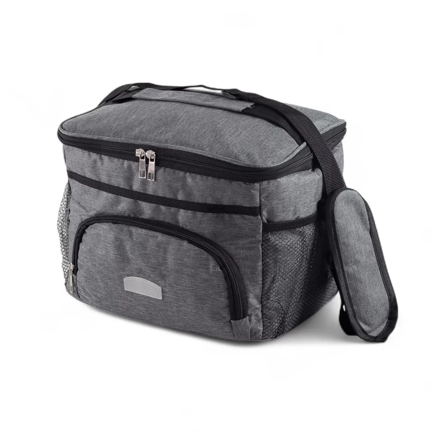 Produzida em poliéster resistente à água, esta bolsa térmica alia durabilidade e funcionalidade para diferentes usos no dia a dia. Possui capacidade de 10 litros, ideal para armazenar lanches, bebidas ou pequenas refeições com segurança. Seu revestimento interno em PEVA contribui para a conservação térmica, mantendo os alimentos frescos por mais tempo. O fechamento em zíper garante praticidade e proteção, enquanto os dois bolsos laterais em tela e o bolso frontal com zíper facilitam o acesso a itens menores ou acessórios. A alça de mão é fixa e reforçada, e a alça transversal removível oferece versatilidade no transporte. Com design moderno e disponível em diversas cores, é perfeita para atividades ao ar livre, trabalho, escola ou academia. Graças à sua ampla área de personalização, é uma excelente opção de brinde personalizado, agregando valor à marca em campanhas promocionais, eventos corporativos ou ações de fidelização.