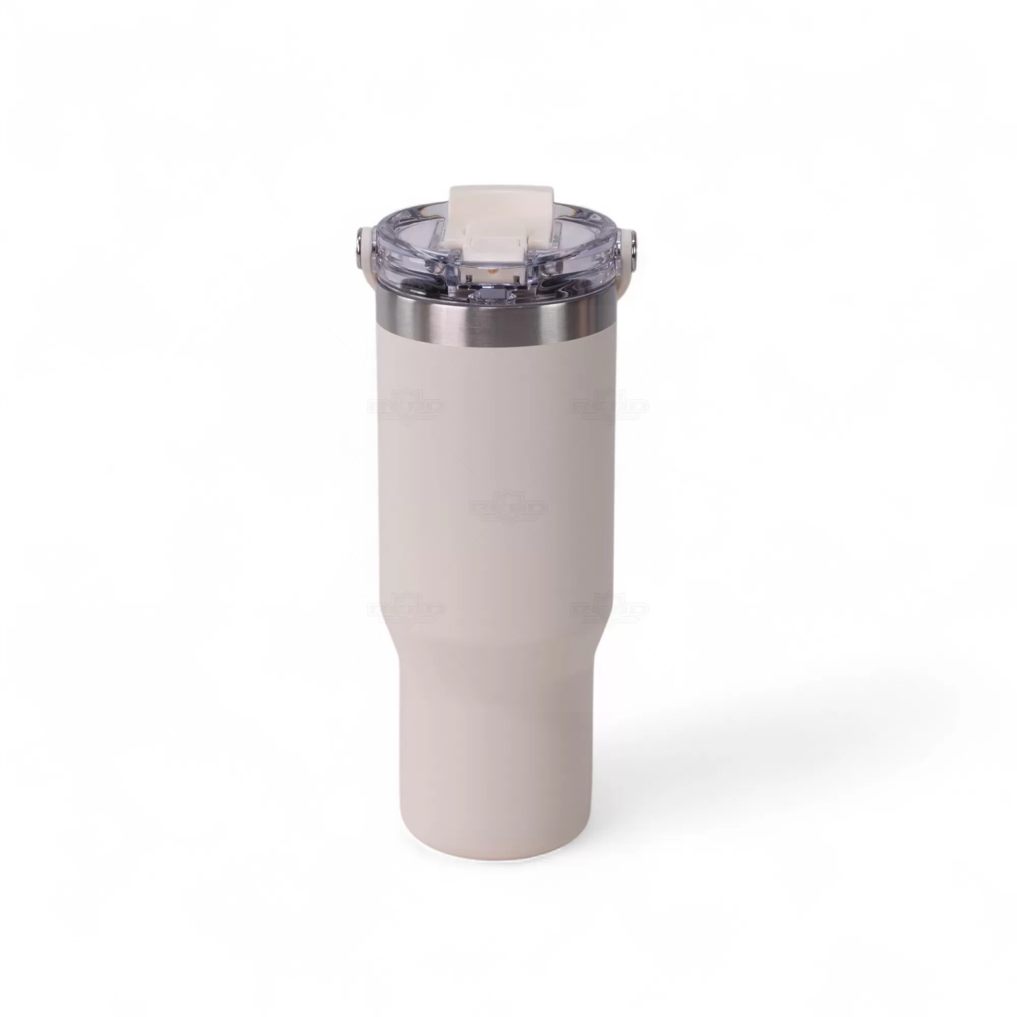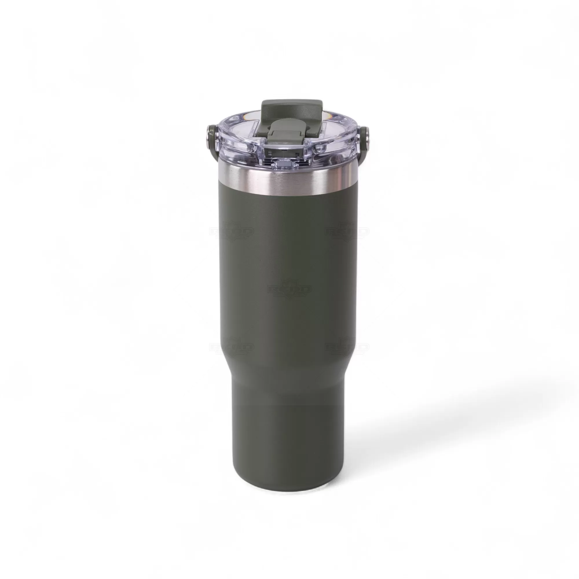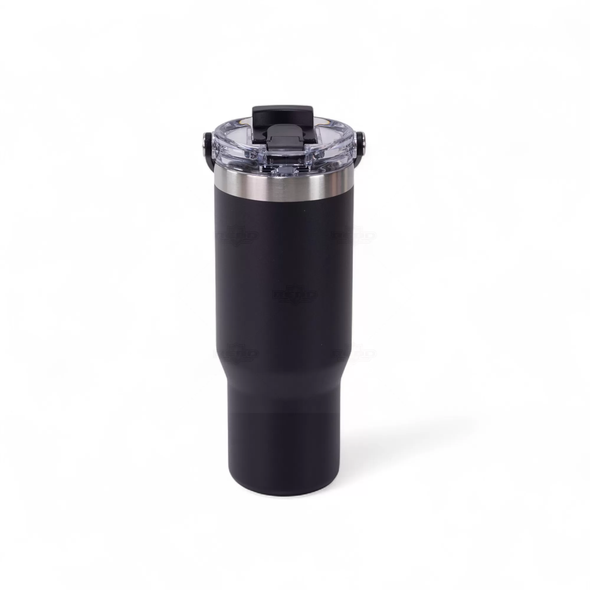 Copo térmico fabricado em aço inox com capacidade de 900ml, ideal para manter bebidas quentes ou frias por mais tempo. Possui parede dupla com isolamento eficiente e tampa plástica rosqueável com vedação a vácuo, garantindo segurança no transporte. O modelo conta com bico flip de fácil abertura, canudo plástico interno removível para maior praticidade e alça integrada que facilita o manuseio. O design moderno e a pintura eletrostática oferecem acabamento sofisticado e cores duradouras, resistentes ao uso diário. Indicado para quem precisa de hidratação constante ao longo do dia, seja em ambientes corporativos, atividades ao ar livre ou deslocamentos. Graças ao seu visual elegante e amplo espaço para personalização, é também uma excelente alternativa de brinde promocional, agregando valor à marca em ações de marketing, eventos empresariais e campanhas institucionais.