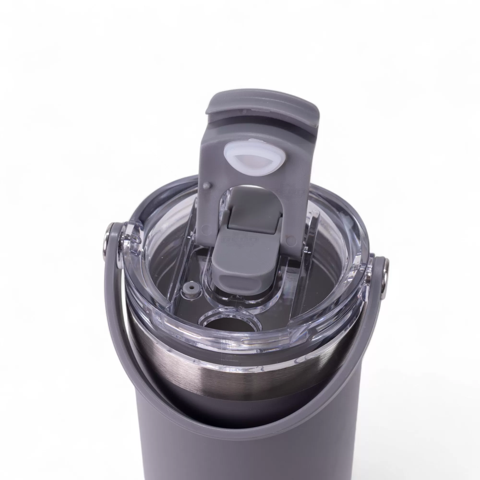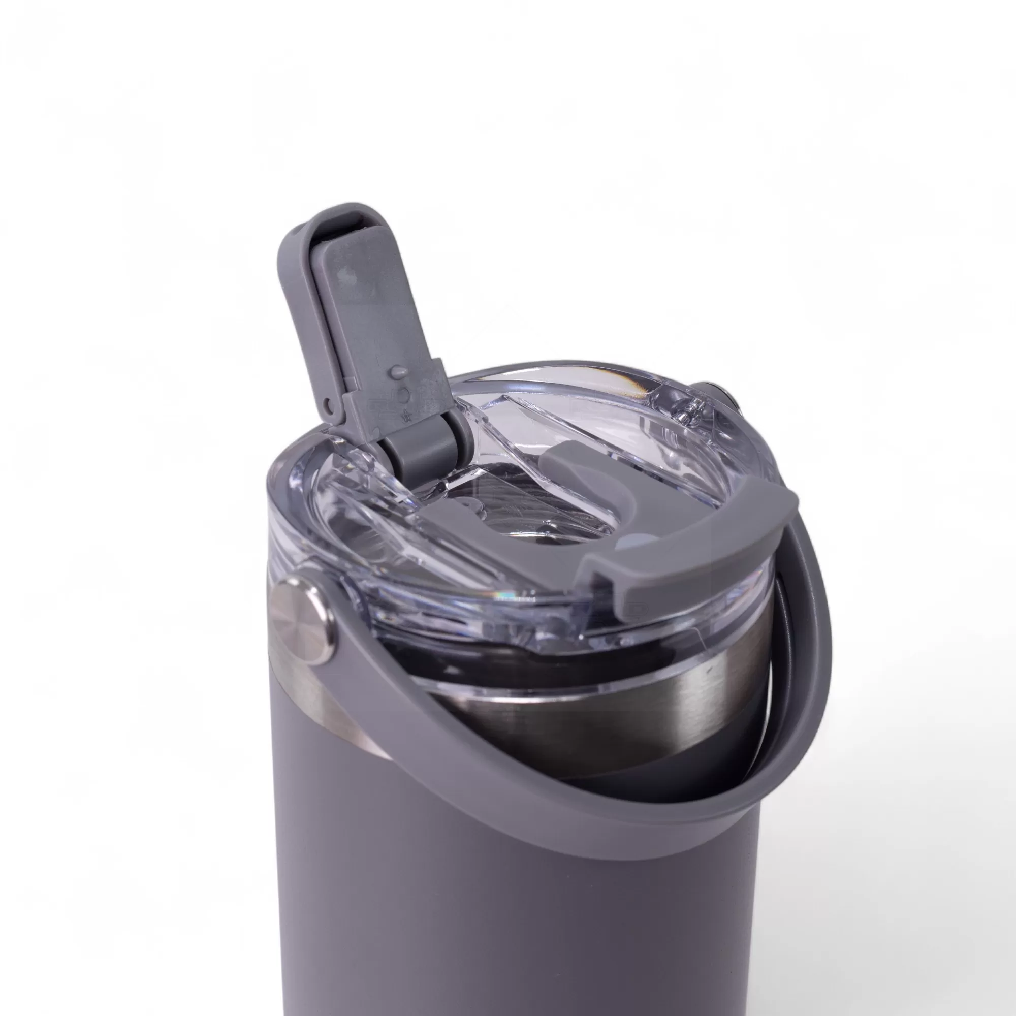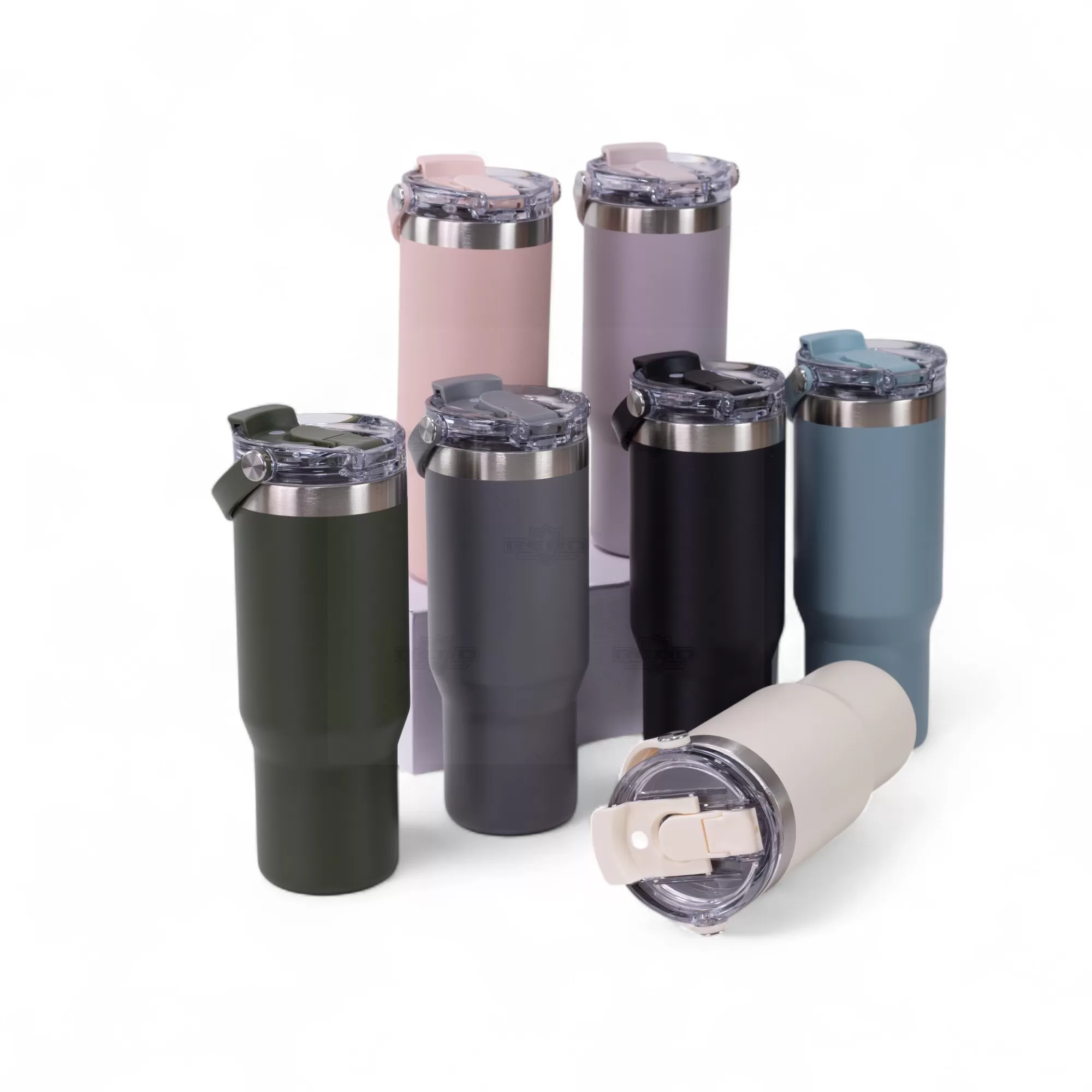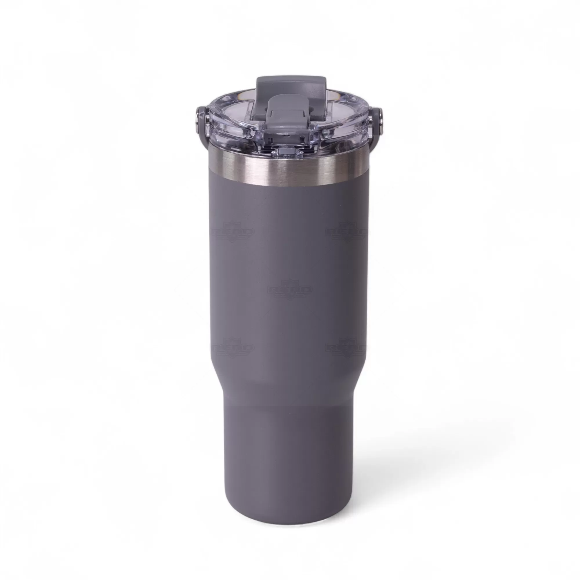 Copo térmico fabricado em aço inox com capacidade de 900ml, ideal para manter bebidas quentes ou frias por mais tempo. Possui parede dupla com isolamento eficiente e tampa plástica rosqueável com vedação a vácuo, garantindo segurança no transporte. O modelo conta com bico flip de fácil abertura, canudo plástico interno removível para maior praticidade e alça integrada que facilita o manuseio. O design moderno e a pintura eletrostática oferecem acabamento sofisticado e cores duradouras, resistentes ao uso diário. Indicado para quem precisa de hidratação constante ao longo do dia, seja em ambientes corporativos, atividades ao ar livre ou deslocamentos. Graças ao seu visual elegante e amplo espaço para personalização, é também uma excelente alternativa de brinde promocional, agregando valor à marca em ações de marketing, eventos empresariais e campanhas institucionais.