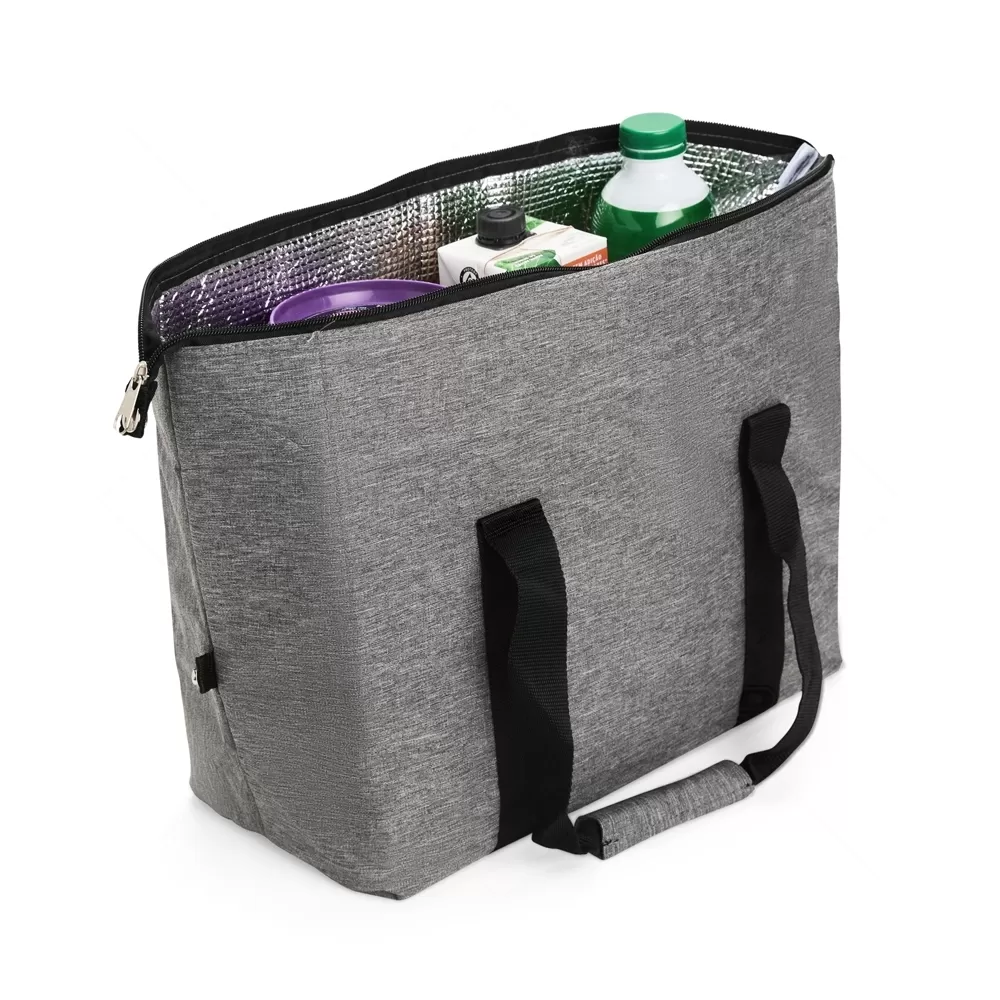 Bolsa térmica confeccionada em Oxford resistente à água, desenvolvida para garantir praticidade e durabilidade no uso diário. Com capacidade de 20 litros, oferece espaço adequado para transportar alimentos e bebidas, mantendo a temperatura ideal por mais tempo graças ao revestimento interno em folha de alumínio. O fechamento em zíper assegura vedação eficiente, enquanto os botões laterais de metal permitem junção prática, ajustando o formato da bolsa conforme a necessidade. Além do amplo compartimento principal, conta ainda com bolso externo funcional para pequenos objetos, tornando o transporte mais organizado. As alças de mão em nylon são reforçadas e possuem suporte de união por velcro, proporcionando maior conforto e segurança durante o deslocamento. Ideal para passeios, piqueniques, viagens ou uso em atividades diárias, essa bolsa térmica alia versatilidade e estilo moderno. É também uma excelente opção de brinde corporativo, valorizando ações promocionais e fortalecendo a presença de marca em diferentes contextos.