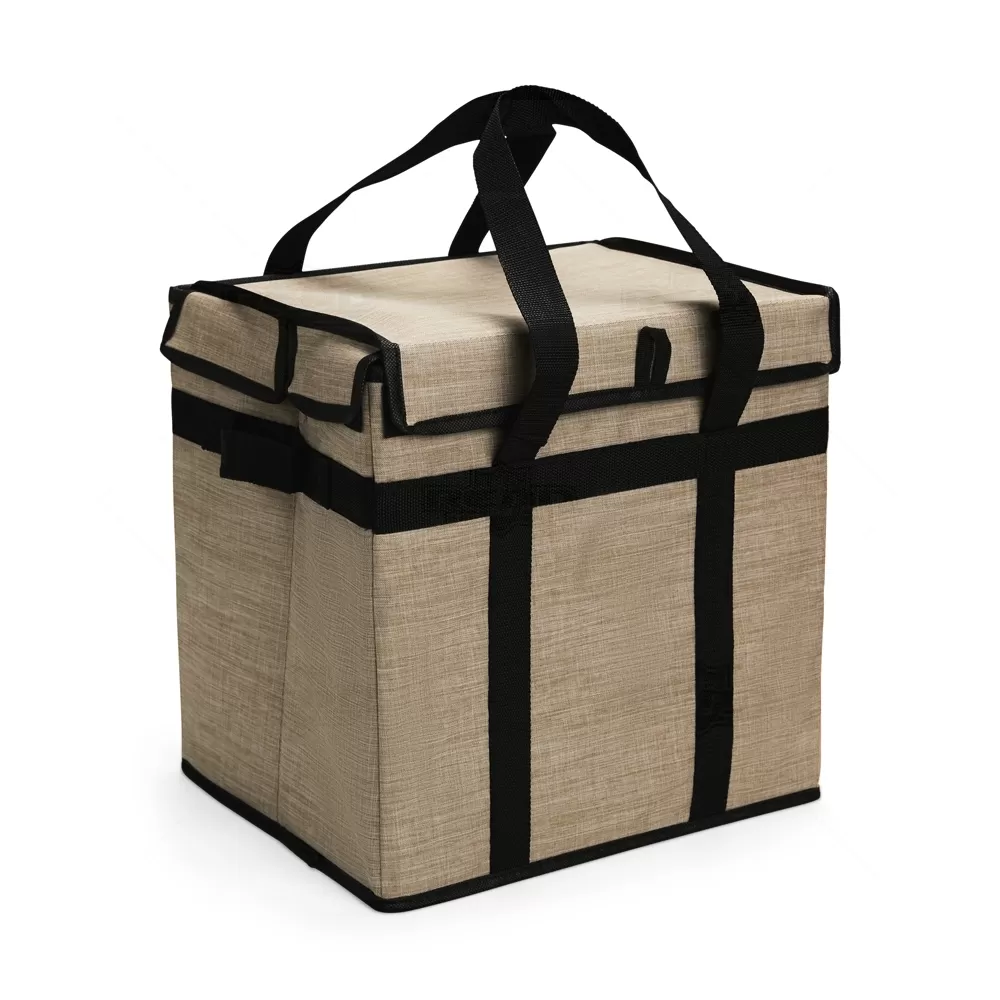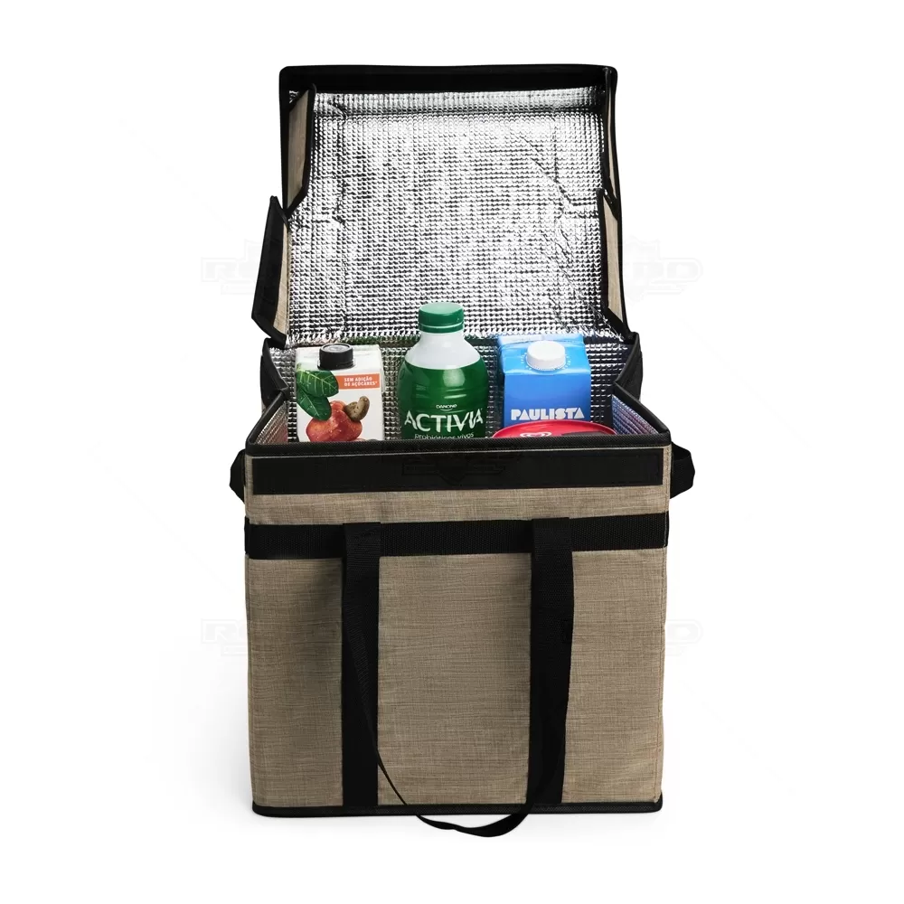 Bolsa térmica confeccionada em Oxford impermeável, projetada para oferecer alta resistência e durabilidade em diferentes situações de uso. Com capacidade de 31 litros, é ideal para armazenar e transportar alimentos e bebidas, mantendo a temperatura adequada por mais tempo graças ao revestimento térmico interno em folha de alumínio. Seu fechamento em velcro proporciona praticidade no manuseio, enquanto a armação interna em placa de PVC garante estrutura firme e estável. Outro diferencial é a junção inferior em velcro, que permite dobrar e reduzir o volume da bolsa quando não estiver em uso, facilitando o armazenamento e o transporte. O design funcional inclui um par de alças de nylon resistentes, que asseguram conforto e segurança no deslocamento. Versátil e eficiente, é perfeita para piqueniques, viagens, entregas ou uso diário. Também se destaca como excelente opção de brinde promocional em ações corporativas, unindo utilidade e alta visibilidade para a marca.