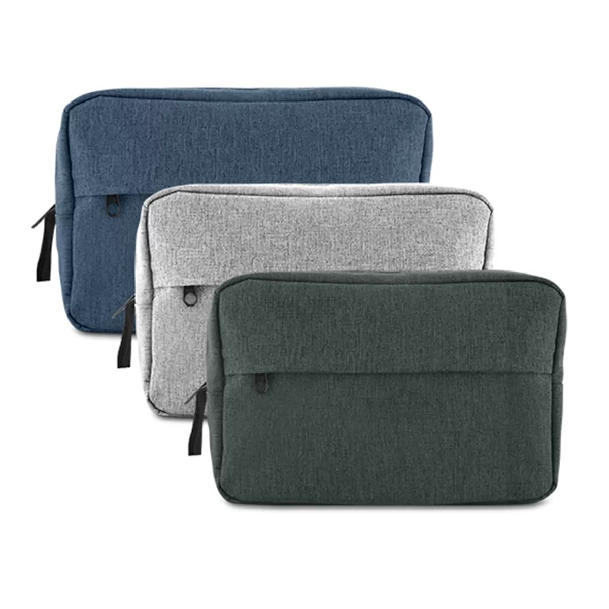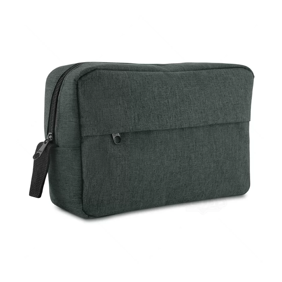 A nécessaire em poliéster 300D combina praticidade e resistência em um design moderno e funcional. O material confere durabilidade e leveza, ideal para transportar itens de higiene pessoal, cosméticos ou pequenos acessórios em viagens, academia ou no dia a dia. Possui fechamento em zíper no compartimento principal, garantindo segurança para os objetos, além de um bolso frontal adicional que facilita o acesso a itens menores e de uso rápido. A alça lateral amplia a praticidade no transporte, permitindo carregar de forma confortável e segura. Disponível em cores versáteis, adapta-se a diferentes estilos e contextos, oferecendo organização e sofisticação em um acessório compacto. Pela sua utilidade e espaço adequado, é uma opção de brinde funcional e elegante para ações promocionais, eventos corporativos ou campanhas de fidelização. Empresas podem personalizá-la com sua marca, reforçando presença e valorizando clientes e colaboradores em um produto de uso constante.