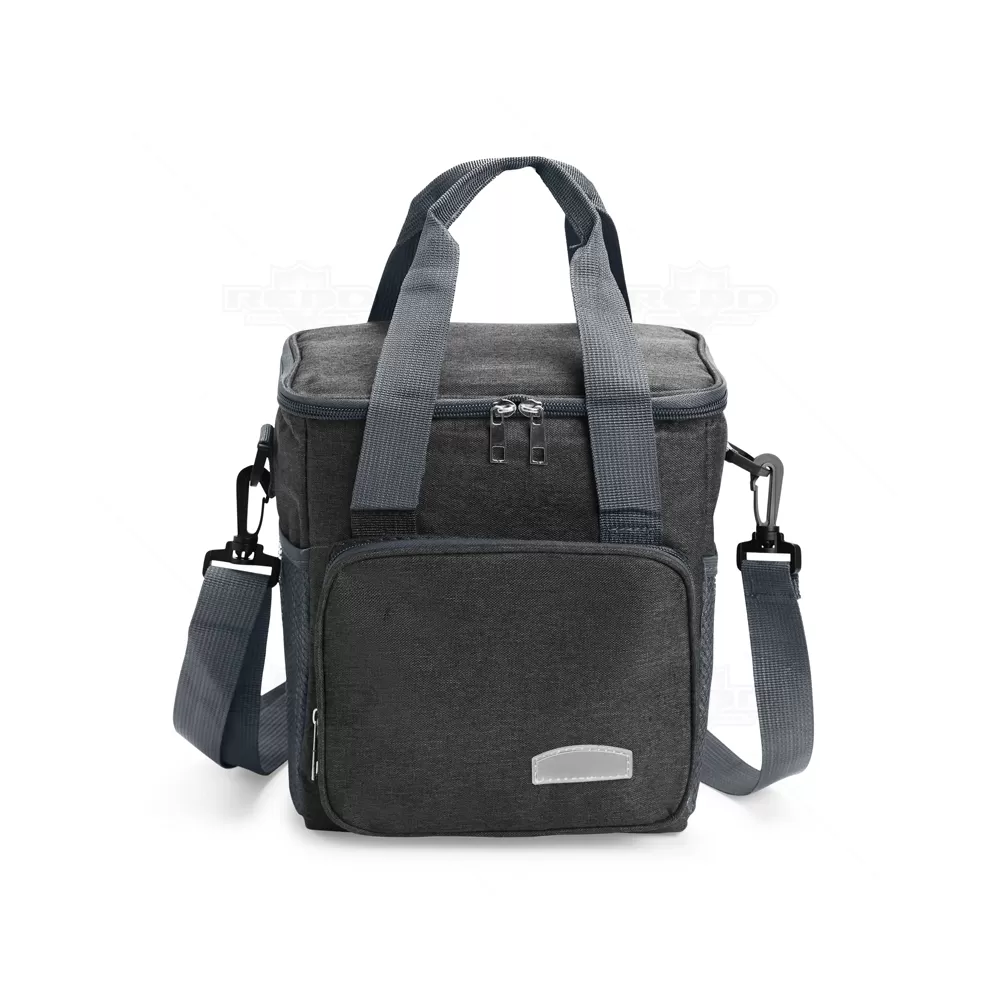 Produzida em Oxford resistente à água, esta bolsa térmica alia praticidade e durabilidade em um design funcional. Com capacidade de até 7 litros, é ideal para transportar lanches, bebidas ou refeições completas, mantendo a temperatura adequada por mais tempo. Seu interior conta com revestimento térmico em folha de alumínio na tampa e em PEVA no restante da estrutura, materiais que garantem eficiência no isolamento e fácil higienização. O fechamento em zíper assegura maior proteção, enquanto o bolso frontal externo com zíper oferece espaço extra para pequenos objetos ou acessórios. Além disso, possui dois bolsos laterais em tela de nylon com elástico, perfeitos para garrafas ou itens de acesso rápido. O transporte é facilitado pelas duas alças laterais fixas e pela alça transversal removível e ajustável, proporcionando versatilidade no uso. Por sua funcionalidade e espaço para personalização, torna-se um excelente brinde promocional em ações de marketing, eventos corporativos e campanhas institucionais.