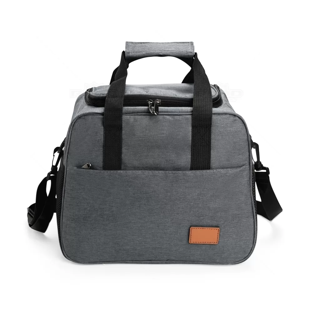 Bolsa térmica confeccionada em Oxford resistente, com fechamento em zíper e capacidade de 20 litros. O compartimento interno é revestido em PEVA atóxico, garantindo melhor conservação da temperatura dos alimentos e bebidas. O design funcional inclui bolso frontal com detalhe da plaquinha de couro sintético fixada com velcro, além de dois bolsos laterais em tela com elástico, que facilitam o armazenamento de garrafas ou pequenos objetos. Para o transporte, oferece duas alças de mão com suporte de junção que proporcionam conforto, além de alça transversal regulável e removível com mosquetões para fixação nas fivelas laterais. Prática, versátil e de visual moderno, é uma solução eficiente para piqueniques, passeios, viagens ou rotinas diárias. Pela ampla área disponível para gravação de logotipos, destaca-se também como excelente opção de brinde corporativo ou presente promocional, unindo utilidade e valorização da marca de forma elegante e funcional.