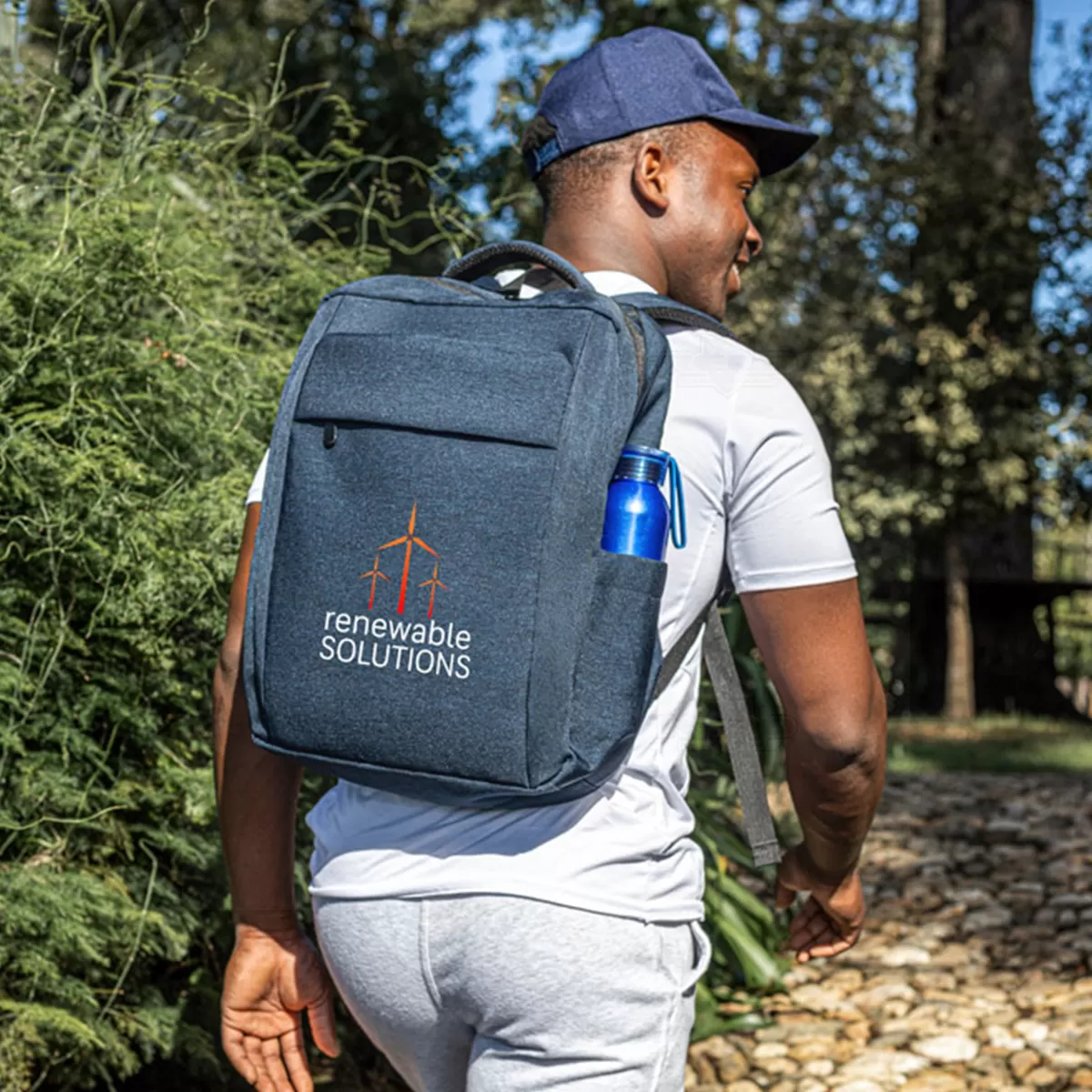 Produzida em poliéster reciclado 300D de alta densidade, com forro interno em poliéster reciclado 210D, esta mochila combina resistência, funcionalidade e apelo sustentável. O compartimento principal é totalmente almofadado e comporta notebooks de 15", garantindo proteção no transporte. Além disso, dispõe de dois bolsos frontais práticos para itens de acesso rápido e um bolso lateral pensado para acomodar squeezes ou garrafas. A capacidade total de 18 litros oferece espaço suficiente para o dia a dia de trabalho, estudo ou viagens curtas. As alças acolchoadas proporcionam maior conforto durante o uso prolongado, enquanto a parte posterior inclui uma alça trolley, ideal para acoplagem em malas de viagem, tornando a mobilidade ainda mais prática. Por reunir design moderno, consciência ecológica e utilidade, a mochila é uma excelente alternativa de brinde personalizado para empresas, sendo perfeita em ações promocionais voltadas a clientes e colaboradores que valorizam sustentabilidade.