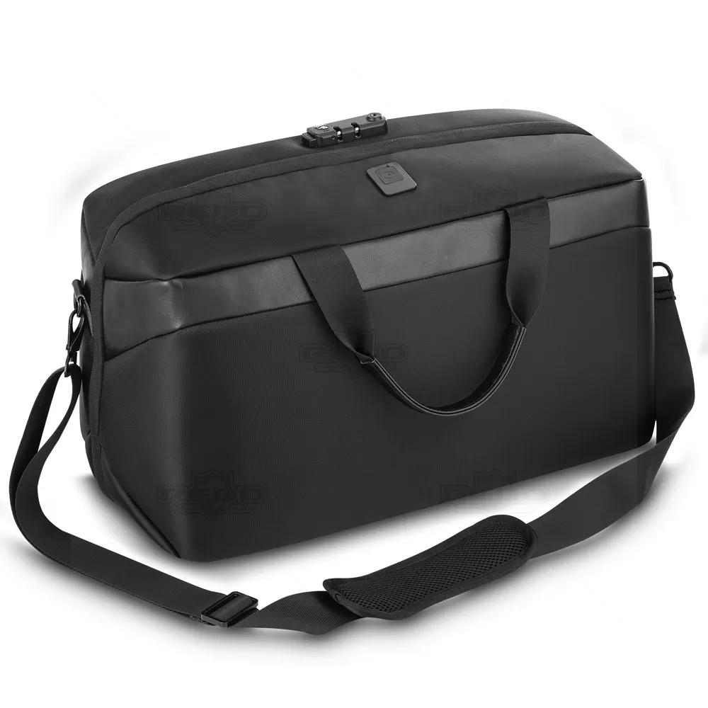 Mala executiva confeccionada em poliéster 600D com interior em poliéster 210D, unindo resistência e acabamento refinado. O compartimento principal é amplo e conta com divisórias internas, incluindo bolso com zíper para itens menores, além de compartimento exclusivo para notebook de até 15,6”, garantindo segurança e praticidade no transporte. Para maior comodidade, possui alça de mão reforçada e alça de ombro ajustável e removível com apoio acolchoado, ideal para longas viagens ou uso diário. Seu design moderno traz entrada USB externa para carregamento, permitindo conectar o power bank internamente e carregar dispositivos em movimento. O sistema de segurança é um diferencial, oferecendo cadeado com senha segredo tipo TSA, (O Cadeado TSA Executive é ideal para sua mala de viagem, pois impede que você tenha seu cadeado danificado em inspeções em aeroportos dos Estados Unidos. Os cadeados TSA têm um sistema que permite que, além do seu segredo numérico, uma chave mestra possuída por agentes de segurança os abra). Versátil e elegante, esta mala é perfeita para profissionais que buscam organização e estilo no dia a dia. Além disso, sua ampla área de personalização a torna excelente opção de brinde premium em ações corporativas e eventos executivos.