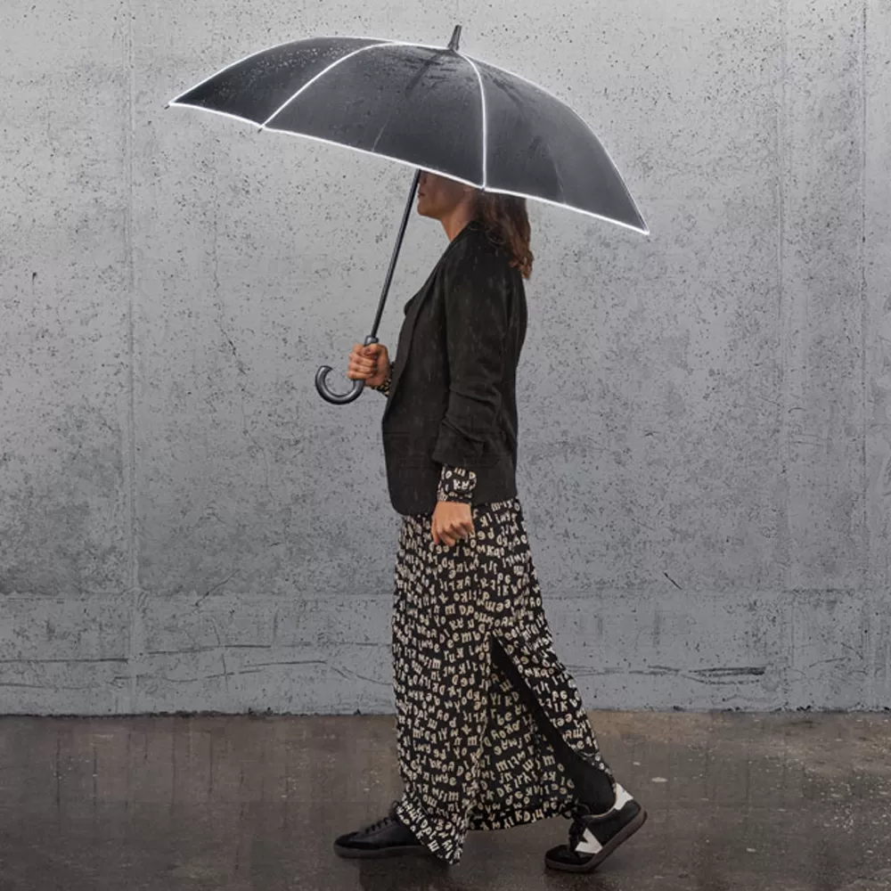 Este guarda-chuva é produzido em poliéster 100% reciclado (rPET) pongee 190T, destacando-se pela durabilidade e apelo sustentável. Sua estrutura conta com varetas e haste em fibra de vidro, que garantem leveza e resistência mesmo em condições de vento, já que o modelo é totalmente à prova de torções. O sistema de abertura automática facilita o uso no dia a dia, trazendo praticidade em situações de chuva repentina. Um diferencial marcante são os detalhes refletivos em todo o contorno, que aumentam a visibilidade em ambientes de pouca luz, proporcionando mais segurança ao usuário. O design elegante, com cabo curvo e acabamento reforçado, combina funcionalidade e estilo em uma peça moderna e versátil. Fornecido em bolsa individual, este guarda-chuva é uma excelente opção de brinde personalizado, ideal para empresas que desejam associar sua marca a responsabilidade ambiental, utilidade e sofisticação em ações promocionais e eventos corporativos.