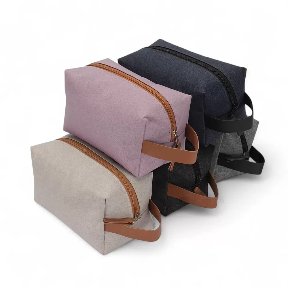 Nécessaire confeccionada em nylon resistente à água, que combina praticidade e durabilidade para o uso diário ou em viagens. Seu design funcional conta com fechamento em zíper reforçado, garantindo maior segurança no armazenamento dos itens. O puxador e a alça lateral em couro sintético acrescentam um toque de sofisticação e facilitam o transporte, permitindo que seja levada no pulso ou guardada em bolsas e malas maiores. Com formato amplo e estruturado, oferece espaço interno adequado para organizar cosméticos, produtos de higiene pessoal ou acessórios essenciais, mantendo tudo protegido e acessível. Disponível em cores modernas e neutras, adapta-se a diferentes estilos e preferências, valorizando tanto a estética quanto a funcionalidade. Além disso, sua superfície é ideal para personalização, tornando-se uma excelente opção como brinde promocional, reforçando a presença da marca e proporcionando um presente útil e elegante ao público-alvo.