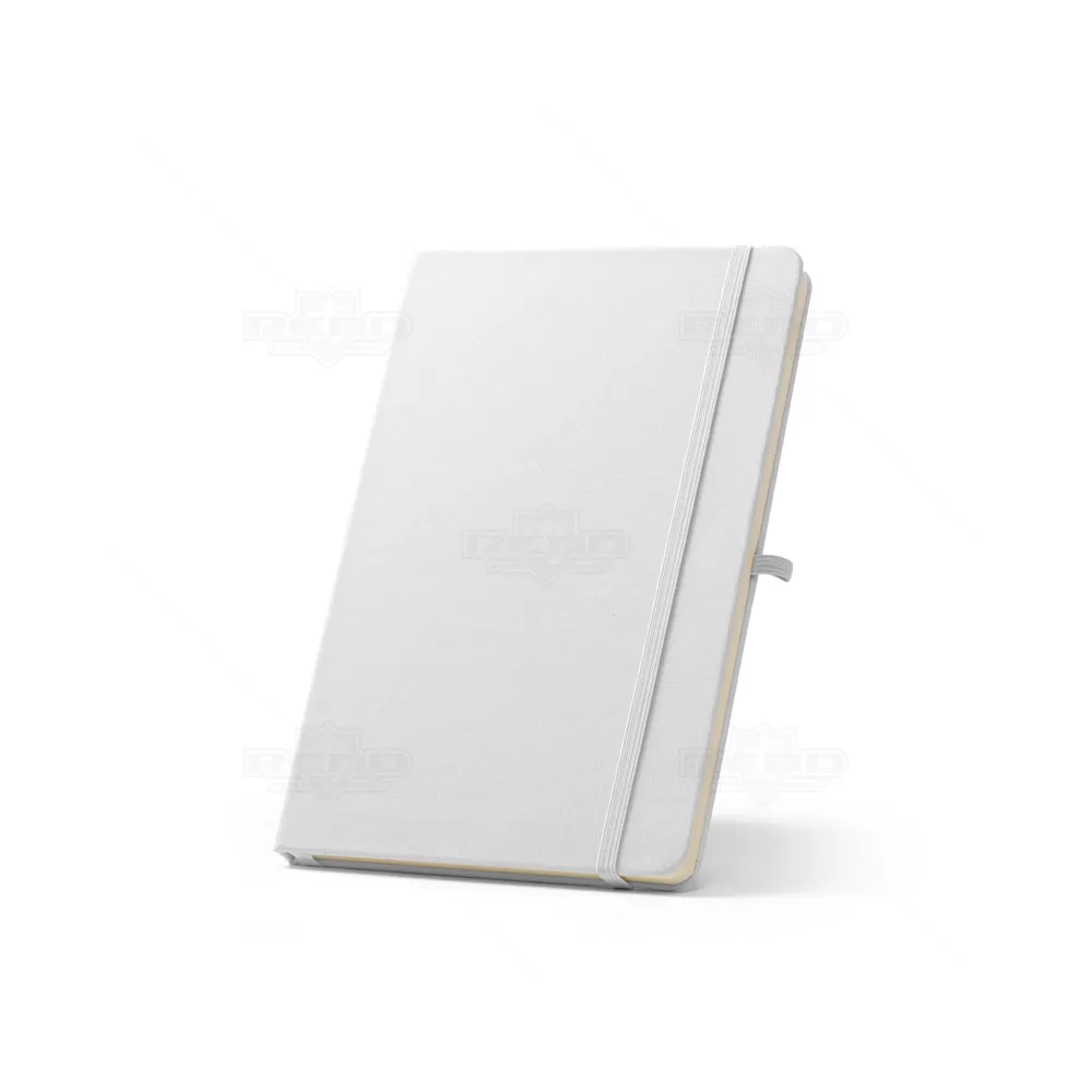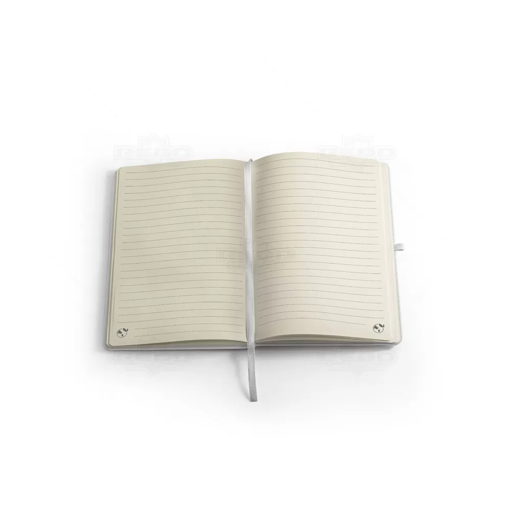 Este bloco A5 combina elegância e funcionalidade em um design pensado para o dia a dia. Sua capa dura é confeccionada em poliéster 300D 100% reciclado (rPET), o que garante durabilidade e ao mesmo tempo contribui para práticas mais sustentáveis. O acabamento liso da capa é ideal para personalização em sublimação, permitindo aplicações criativas e de alto impacto visual. O interior contém 160 páginas pautadas em papel 100% reciclado na cor marfim, com gramatura leve que proporciona escrita confortável e organizada. Entre os detalhes que elevam sua praticidade estão a fita separadora para marcação de páginas, o suporte lateral para esferográfica (não inclusa) e o elástico de fecho, que assegura maior proteção durante o transporte. Além de útil para anotações em reuniões, estudos ou planejamento pessoal, este bloco é uma excelente escolha como brinde personalizado, reforçando a imagem sustentável e inovadora de empresas em eventos, ações promocionais ou kits corporativos.
