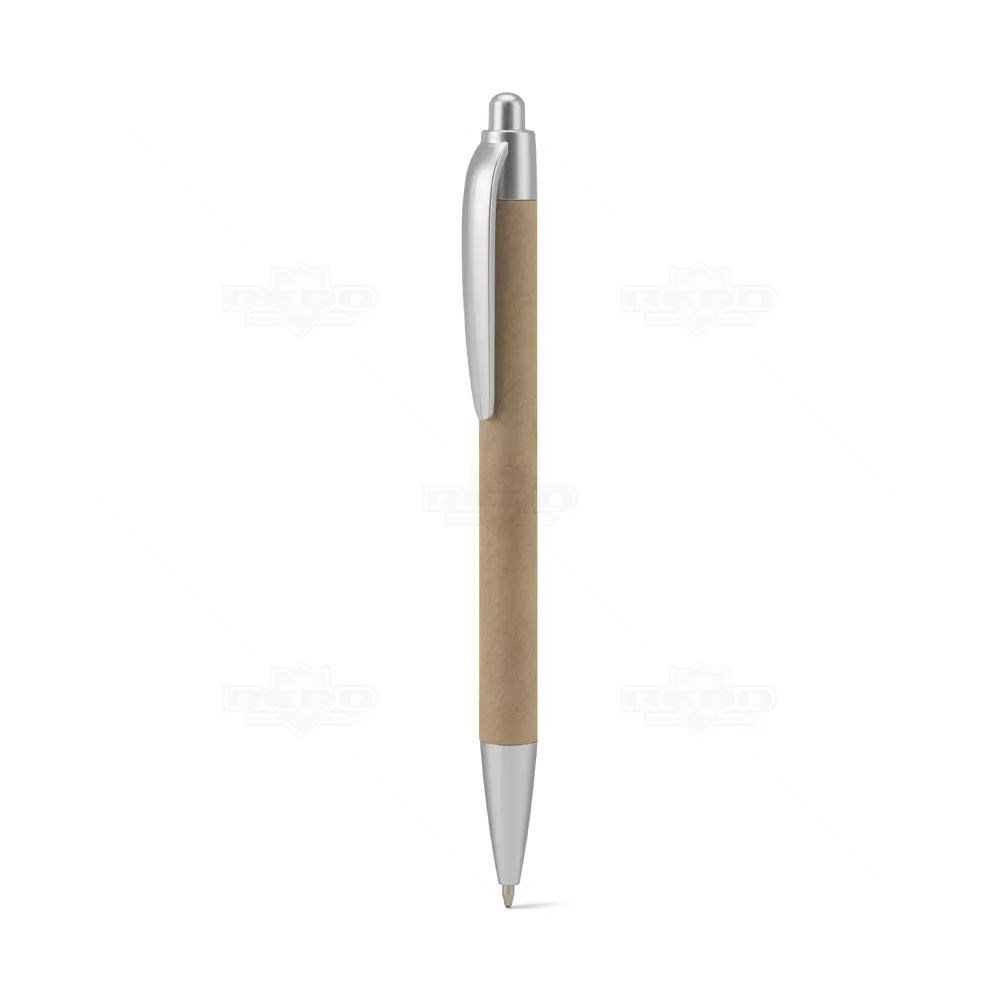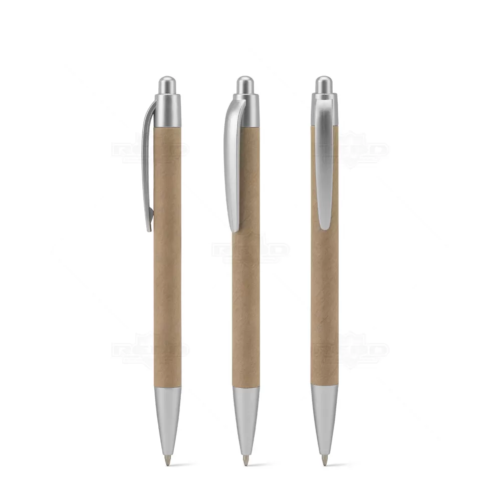 Esta esferográfica combina simplicidade e consciência ambiental em um design moderno e funcional. Seu corpo é produzido em papel 100% reciclado, com acabamento natural que transmite autenticidade e valor sustentável. Os detalhes em ABS 100% reciclado reforçam a resistência e garantem um visual elegante, especialmente no clipe e nos acabamentos metálicos. O sistema retrátil oferece praticidade no uso diário, enquanto a escrita em azul proporciona traços suaves e consistentes, ideais para anotações, assinaturas e uso constante no ambiente de trabalho ou estudo. Leve e confortável, é um acessório indispensável para quem busca aliar estilo e responsabilidade ambiental em produtos de escritório. Na segunda metade, vale destacar que esta esferográfica é uma excelente opção de brinde personalizado, já que além de funcional e acessível, transmite uma forte mensagem de sustentabilidade. Perfeita para ações promocionais, eventos corporativos e programas de fidelização, reforça o compromisso da marca com práticas conscientes.