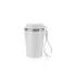 Copo térmico produzido com revestimento plástico e interior em aço inox 90% reciclado, com parede dupla que garante maior isolamento térmico e conservação da temperatura por mais tempo. Seu acabamento mate proporciona um visual sofisticado e moderno, ideal para o dia a dia em diferentes contextos. Com capacidade de 460 mL, é perfeito para bebidas quentes ou frias, oferecendo praticidade e resistência. A tampa em PP é à prova de vazamentos, garantindo segurança no transporte, e conta com uma alça confeccionada em PU e PET, que facilita o manuseio e permite levá-lo com mais conforto em deslocamentos. Fornecido em caixa presente de papel kraft reciclado, reforça o compromisso sustentável, tornando-se um item funcional e ambientalmente responsável. Esse copo é uma excelente opção de brinde para eventos corporativos, ações promocionais ou campanhas de conscientização, valorizando a marca ao associá-la a um produto útil, elegante e ecologicamente correto.