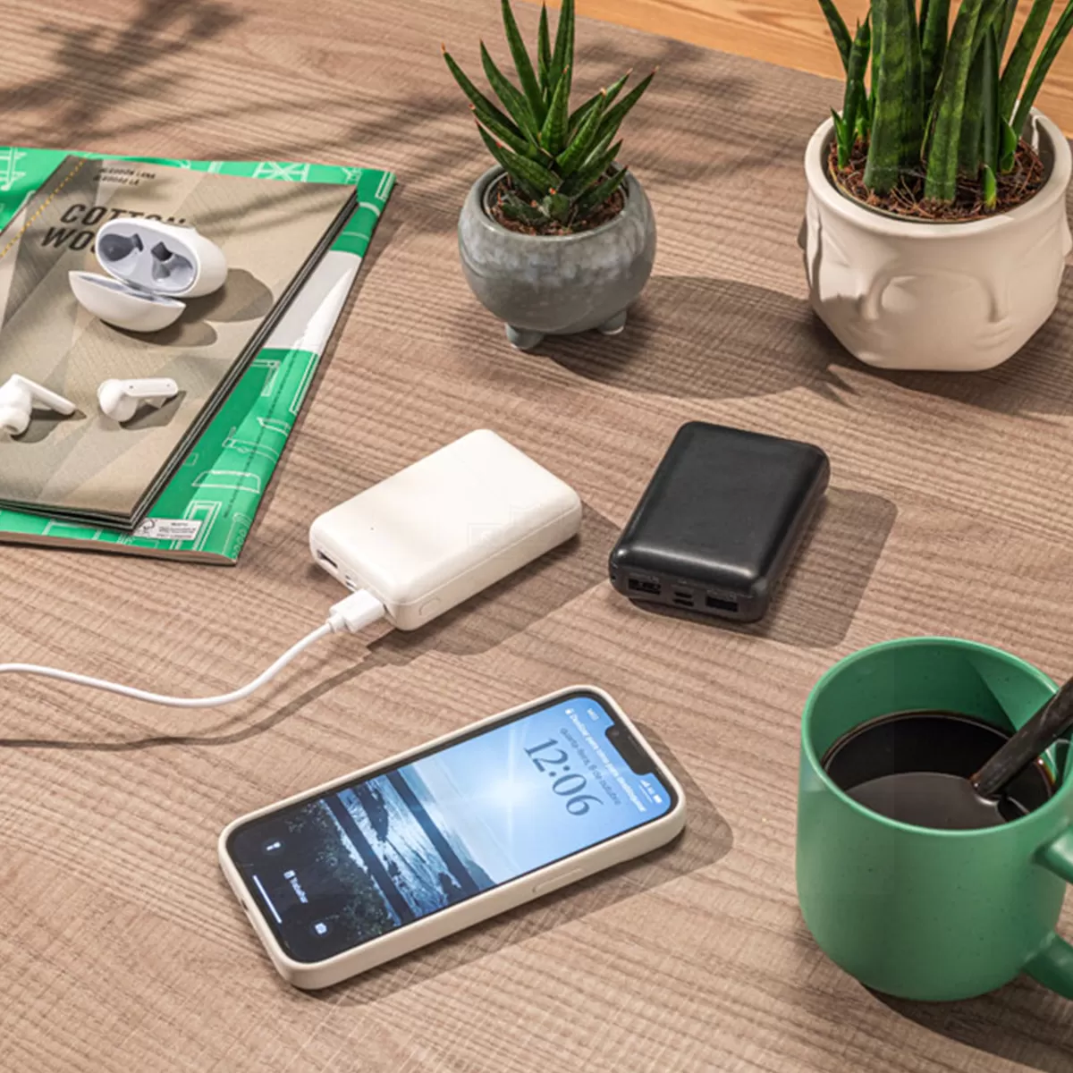 A bateria portátil em ABS 100% reciclado alia alto desempenho e sustentabilidade em um acessório essencial para o dia a dia. Com capacidade de 10.000 mAh, garante múltiplas recargas para seus dispositivos móveis, sendo ideal para viagens, trabalho ou momentos de lazer. Conta com indicador de nível de carga, uma porta de entrada/saída USB-C, uma porta de entrada microUSB e duas portas de saída USB-A, oferecendo versatilidade para conectar diferentes aparelhos simultaneamente. Acompanha cabo de carregamento USB-C, que amplia sua praticidade e compatibilidade. Seu design moderno e resistente reflete a preocupação ambiental ao utilizar material reciclado, sem comprometer a qualidade. Fornecida em caixa presente de papel kraft reciclado, valoriza a entrega e transmite sofisticação. Este modelo é perfeito como brinde personalizado em eventos corporativos e campanhas promocionais, destacando sua marca ao associá-la a tecnologia, utilidade e responsabilidade ecológica.
