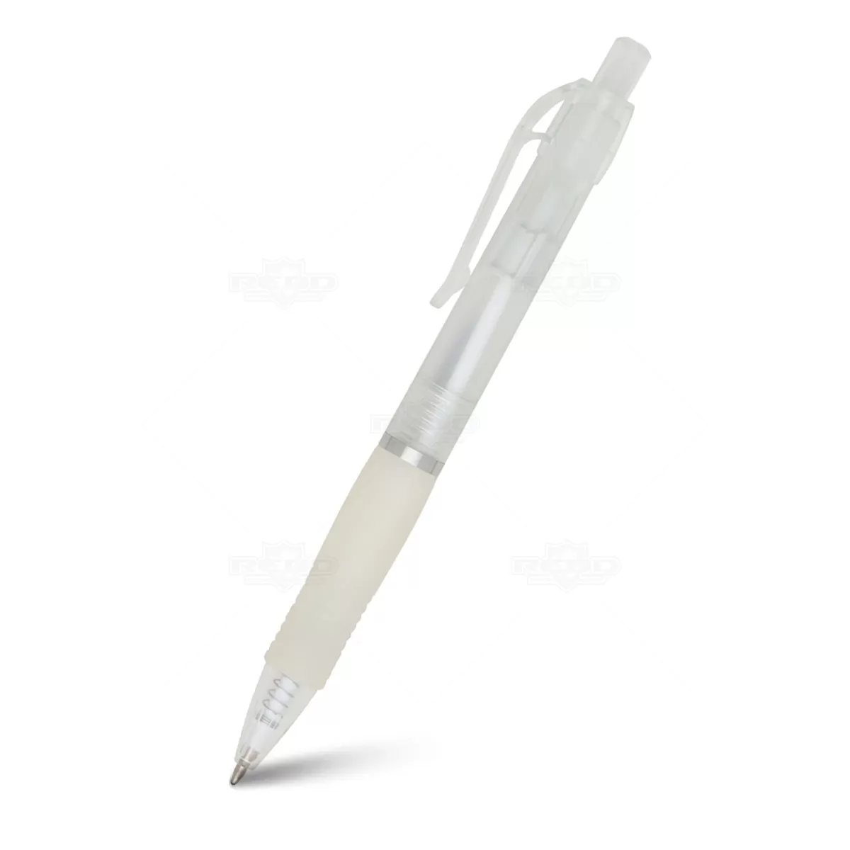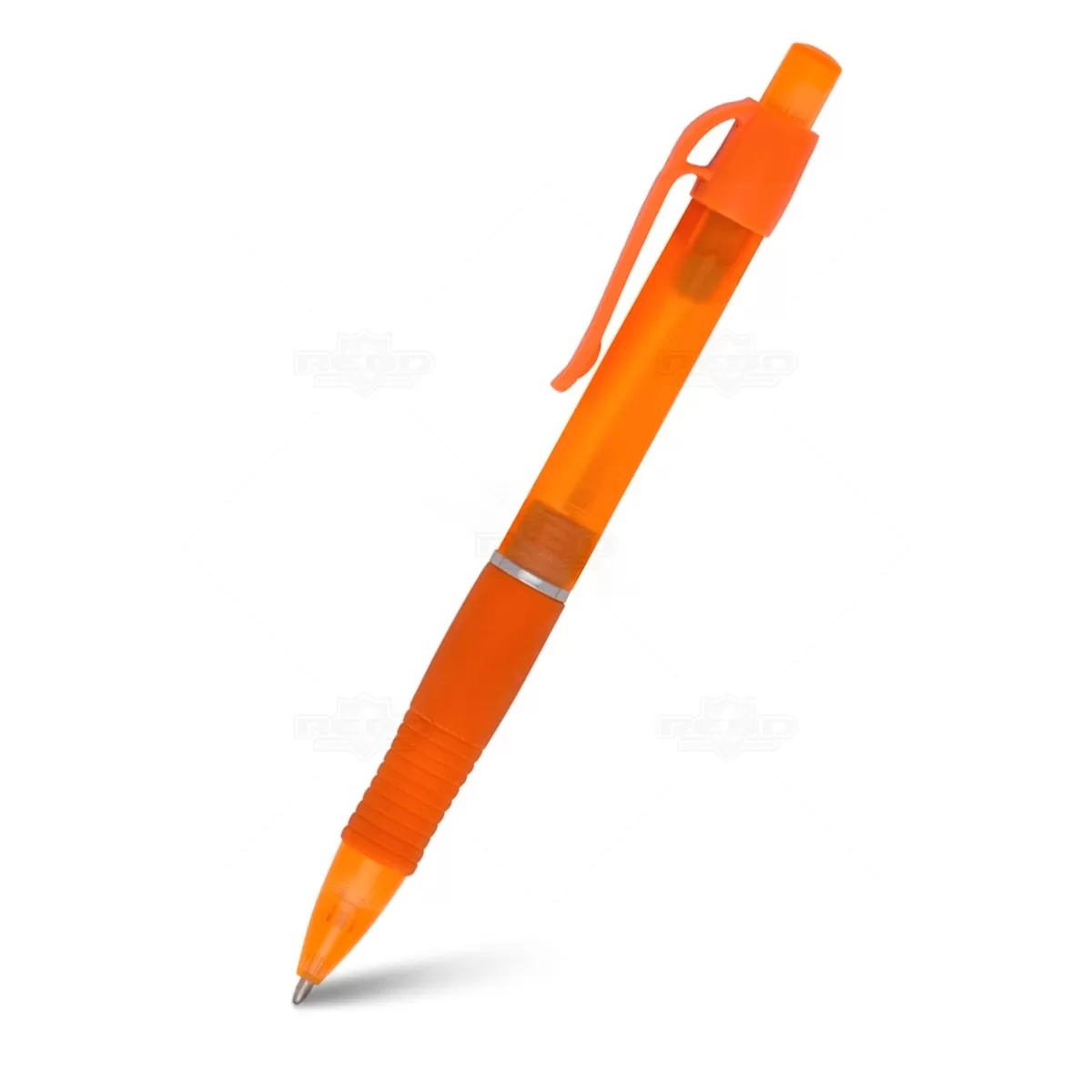Caneta plástica com corpo translúcido e detalhe emborrachado na área de apoio, que proporciona maior conforto na escrita. Possui carga esferográfica azul 1.0 mm, ideal para anotações do dia a dia, além de acionamento por clique que garante praticidade e agilidade no uso. O clip lateral permite fixar em bolsos, cadernos ou agendas, tornando-a funcional e sempre à mão. É uma opção versátil de brinde corporativo personalizado, ideal para eventos, treinamentos e campanhas promocionais. Com ampla área de personalização, destaca a marca de forma prática e útil, reforçando a visibilidade da empresa em diferentes contextos. Destaques do produto: Corpo plástico translúcido em cores variadas Detalhe emborrachado para maior conforto Carga azul 1.0 mm de escrita macia Acionamento por clique funcional Clip lateral prático para transporte Excelente opção de brinde personalizado com logo