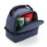 A bolsa térmica dupla é confeccionada em poliéster 300D de alta resistência, com revestimento interno em PEVA que garante excelente isolamento térmico e proteção contra umidade. Com capacidade total de 12 litros, é dividida em dois compartimentos independentes: o superior comporta até 5 litros e o inferior até 3 litros, ideais para separar alimentos e bebidas de maneira prática e organizada. Seu design moderno inclui fechamento em zíper e alça superior reforçada com engate em plástico resistente, facilitando o transporte com segurança. Compacta e funcional, é perfeita para o uso diário, piqueniques, trabalho ou viagens curtas. Além disso, destaca-se como uma excelente opção de brinde promocional ou presente corporativo, unindo praticidade, estilo e utilidade em um único produto, valorizando ações sustentáveis e reforçando a imagem de marcas comprometidas com a funcionalidade e o bem-estar de seus clientes.