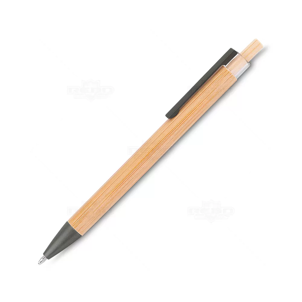 Caneta ecológica com corpo e acionador em bambu natural, material renovável que garante um toque sofisticado e sustentável. Possui detalhe em plástico no acionador, além de ponteira e clipe em tom cinza fosco, que adicionam modernidade e elegância ao design. Seu sistema de acionamento por clique proporciona praticidade e conforto no uso, enquanto o corpo leve e anatômico oferece uma escrita suave e precisa. Ideal para empresas que desejam transmitir valores ligados à sustentabilidade e ao cuidado com o meio ambiente, é perfeita para personalização com logotipos ou mensagens promocionais. Essa caneta é uma excelente opção de brinde ecológico para eventos corporativos, feiras e ações de marketing verde, unindo funcionalidade, estilo e consciência ambiental em um único acessório de escrita diferenciado.