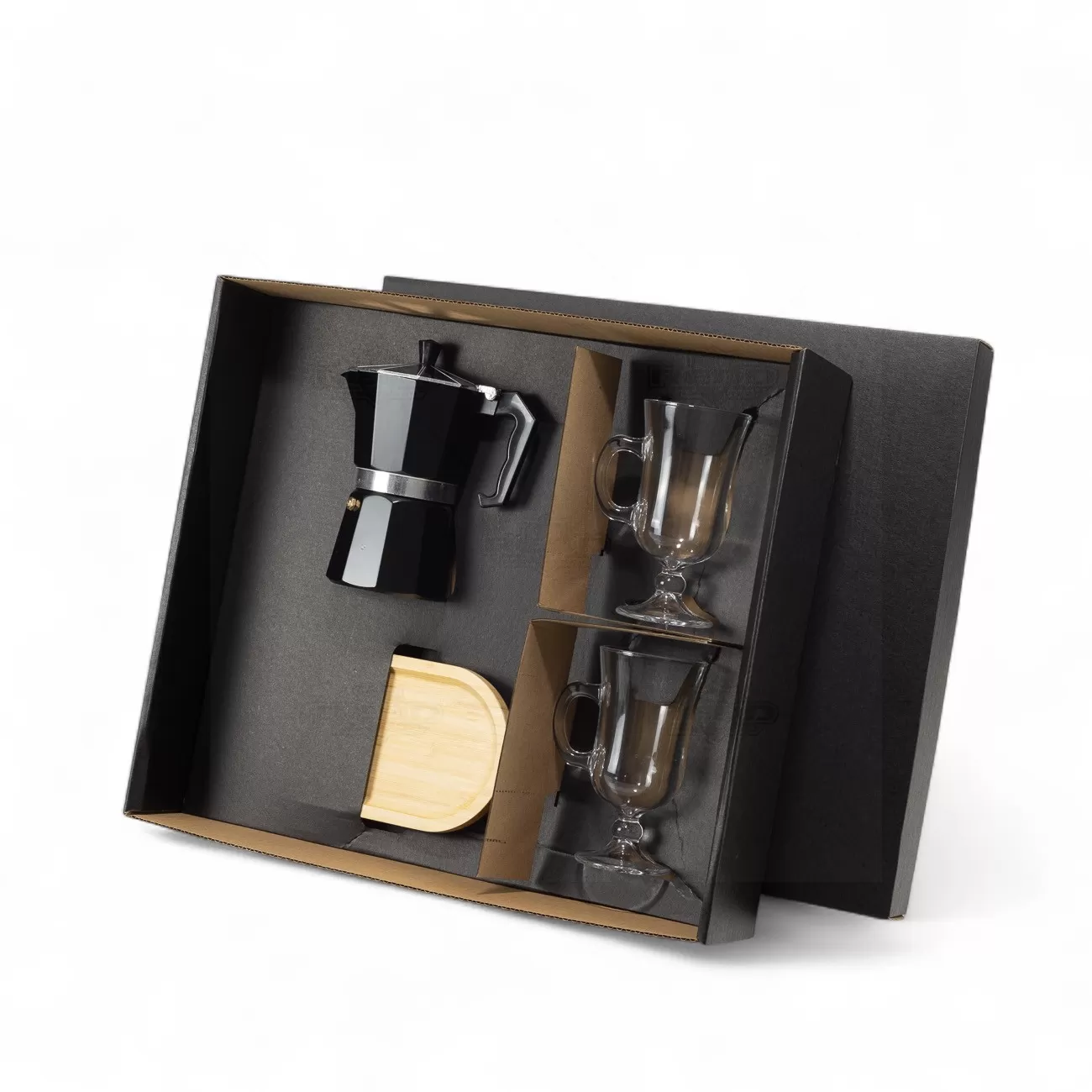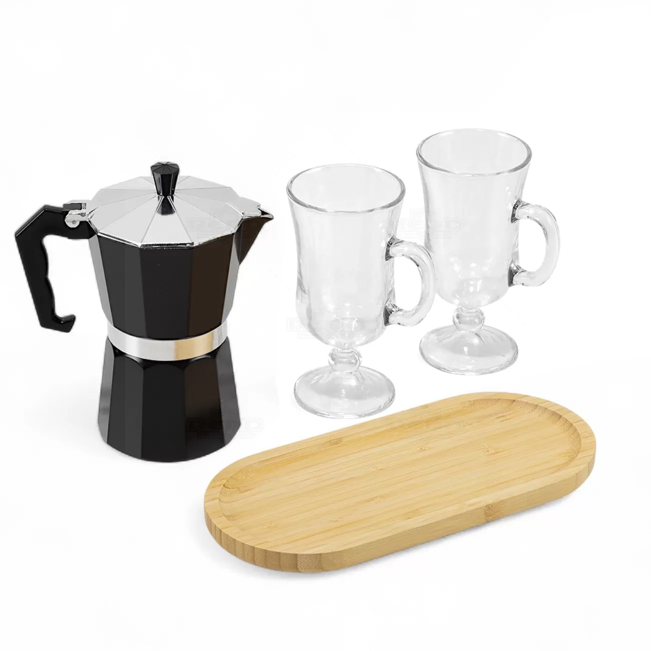 Kit para café composto por cafeteira em alumínio, duas canecas em vidro com capacidade de 240 ml cada e bandeja em bambu natural. A cafeteira possui design clássico e estrutura resistente, ideal para o preparo de cafés frescos e aromáticos, enquanto as canecas garantem elegância e conforto no uso. A bandeja em bambu complementa o conjunto com um toque sofisticado e sustentável, perfeita para servir com estilo. Acompanha caixa presenteável em papel rígido, proporcionando uma excelente apresentação para brindes corporativos, ações promocionais ou presentes personalizados. O conjunto une funcionalidade, durabilidade e estética moderna, sendo ideal para momentos de pausa ou encontros especiais. Um presente completo e requintado, que transmite cuidado e bom gosto, valorizando a experiência do café e reforçando a imagem de marcas que prezam pela qualidade e sustentabilidade.
