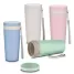 Copo plástico com parede dupla, produzido em fibra de trigo e plástico resistente, com capacidade de 300ml. Seu design moderno e ecológico se destaca pelo acabamento fosco e textura natural, transmitindo leveza e sustentabilidade. A tampa rosqueável garante vedação eficiente, evitando vazamentos e mantendo a temperatura da bebida por mais tempo. Conta ainda com prática alça para transporte, ideal para o dia a dia, passeios ou uso no escritório. Leve e funcional, é uma excelente opção de brinde promocional sustentável, reforçando o compromisso com o meio ambiente e a praticidade no cotidiano. Disponível em cores suaves, combina estética agradável e responsabilidade ambiental, tornando-se uma escolha ideal para empresas que valorizam produtos reutilizáveis e ecológicos. Um copo moderno, durável e versátil, perfeito para acompanhar rotinas com estilo e consciência.