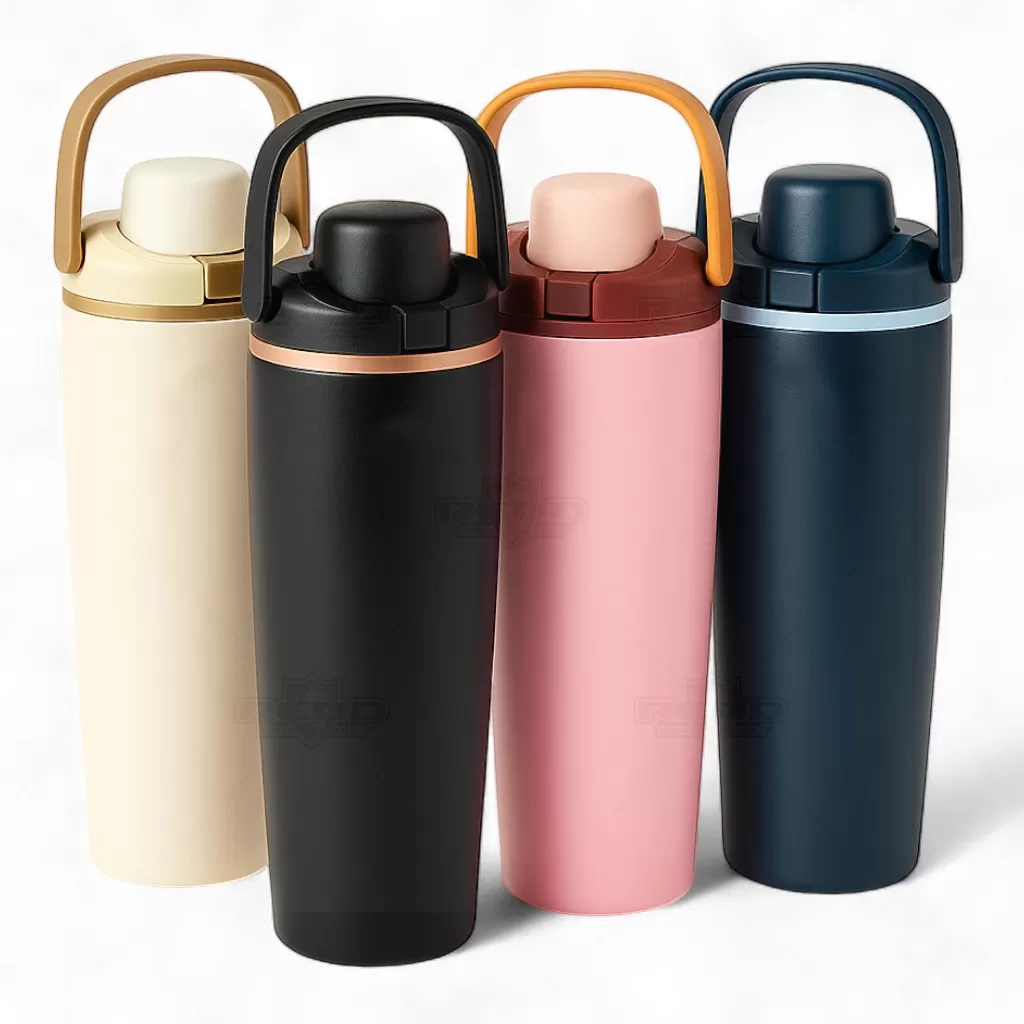 Squeeze térmica produzida em inox de alta qualidade, com capacidade para 850ml, ideal para manter bebidas na temperatura desejada por longos períodos. Possui estrutura com parede dupla e vedação a vácuo, que garante excelente isolamento térmico e evita a condensação externa. A tampa rosqueável em plástico conta com protetor para o bocal, botão de acionamento e trava de segurança, assegurando transporte seguro e higiênico. Inclui alça de mão ergonômica que facilita o uso em deslocamentos, além de canudo interno para encaixe na tampa, proporcionando praticidade no consumo. Seu design moderno, disponível em cores sofisticadas e acabamento fosco, combina funcionalidade e estilo. Ideal para o dia a dia, academias, viagens e ambientes corporativos, é uma excelente opção de brinde promocional ou presente personalizado que une durabilidade, elegância e praticidade.
