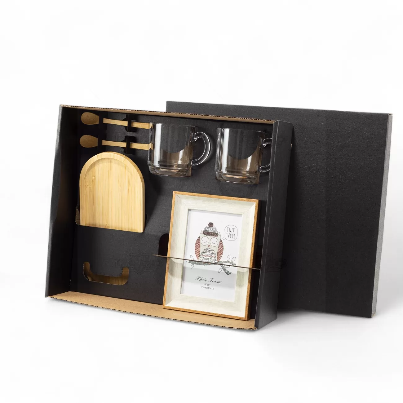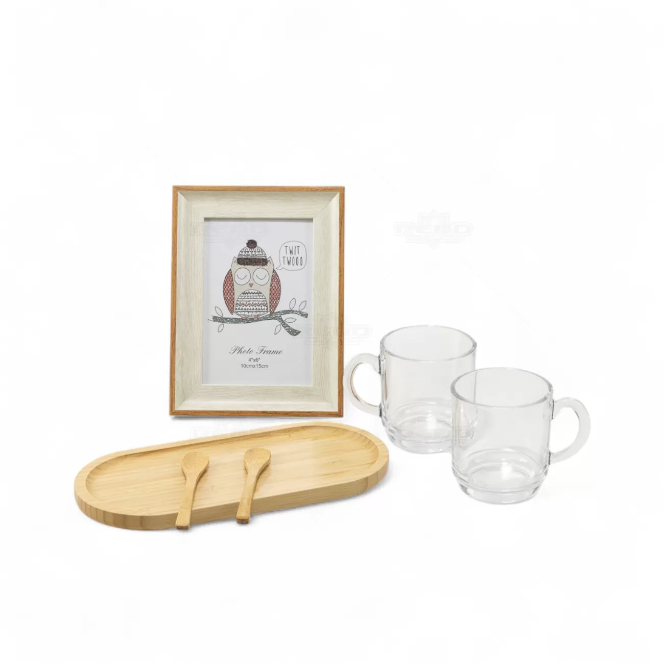 Kit composto por bandeja e duas colheres em bambu, duas canecas em vidro e porta-retrato em madeira, ideal para momentos de pausa e descontração. A bandeja, com acabamento natural e design moderno, proporciona praticidade para servir bebidas e petiscos com charme e organização. As colheres medem 13 cm, perfeitas para acompanhar cafés, chás ou sobremesas, enquanto as canecas em vidro oferecem transparência e elegância, valorizando a apresentação das bebidas. O porta-retrato em madeira complementa o conjunto, permitindo expor lembranças especiais com um toque acolhedor. Acompanha embalagem presenteável em papel rígido, garantindo excelente apresentação e proteção das peças. Esse kit é uma escolha sofisticada e funcional para brindes promocionais, ações corporativas ou presentes personalizados, transmitindo cuidado e bom gosto em qualquer ocasião.