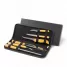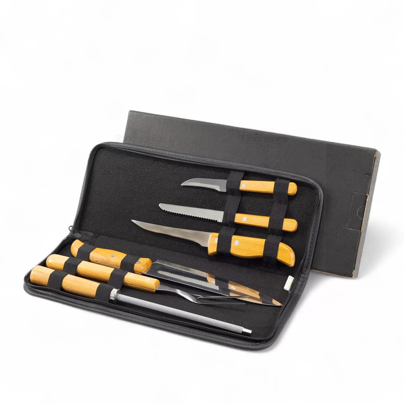 Conjunto completo composto por faca 8”, faca 4” para frutas, faca 5” para desossar e garfo trinchante em madeira e aço inox, além de faca 3” para legumes e chaira 8” em bambu e inox. As lâminas afiadas proporcionam cortes precisos e eficientes, ideais para diferentes tipos de preparo culinário, enquanto os cabos anatômicos em madeira garantem firmeza e conforto no manuseio. A chaira mantém o fio das facas sempre em perfeito estado, aumentando a durabilidade das peças. Todos os itens são acondicionados em estojo com toque almofadado e fechamento em zíper, que protege e organiza o conjunto de forma prática e elegante. Ideal para uso doméstico, profissional ou como brinde promocional e presente personalizado, o kit alia funcionalidade, resistência e estilo, sendo uma excelente opção para quem aprecia qualidade e bom gosto na cozinha ou no churrasco.
