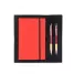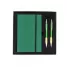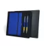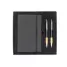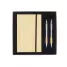 O kit com três peças é composto por uma caderneta, uma caneta e uma lapiseira, apresentados em uma caixa de papelão com berço em plástico que mantém cada item organizado e protegido. A caderneta possui capa dura em papelão reforçado, fechamento em elástico e aproximadamente 82 folhas pautadas na cor marfim e outro com marcadores autoadesivos coloridos, ideal para anotações rápidas e marcação de páginas. A caneta e a lapiseira contam com corpo em plástico e detalhes em bambu, unindo leveza e um toque natural ao conjunto. A caneta possui carga esferográfica azul de 1,0 mm, enquanto a lapiseira utiliza grafite de 0,7 mm, oferecendo escrita precisa e confortável. Trata-se de uma opção elegante e funcional para brindes promocionais, eventos corporativos e presentes personalizados, destacando a utilidade no cotidiano profissional.