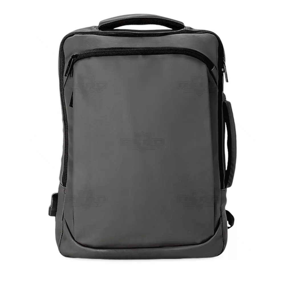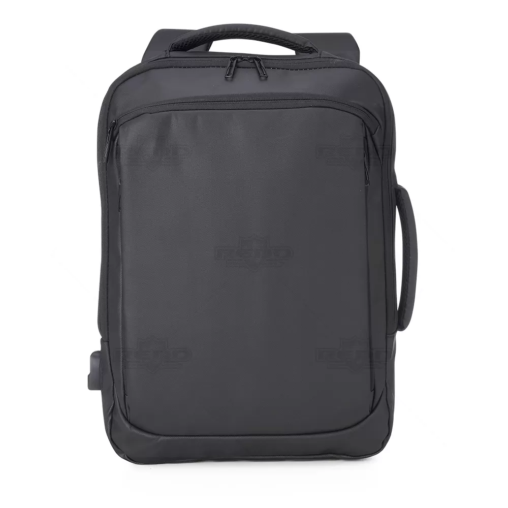 Mochila em couro sintético com capacidade de 22 litros, desenvolvida para oferecer praticidade, proteção e organização no dia a dia. Seu material resistente à água ajuda a preservar os itens internos, enquanto os cinco compartimentos proporcionam excelente distribuição, incluindo o principal com bolso dedicado para notebook de 15,6. As divisórias internas permitem acomodar acessórios e documentos de forma funcional, tornando a mochila ideal para rotinas corporativas, estudos ou viagens. O suporte externo USB facilita a recarga de dispositivos quando conectado a um power bank interno, oferecendo conveniência durante deslocamentos. Para maior versatilidade, conta com alça trolley para acoplar à mala e duas alças de mão, sendo uma lateral que possibilita carregar a mochila no modo pasta. Seu design moderno e acabamento sofisticado tornam o produto uma excelente opção para brindes promocionais e ações institucionais que valorizam utilidade e elegância.