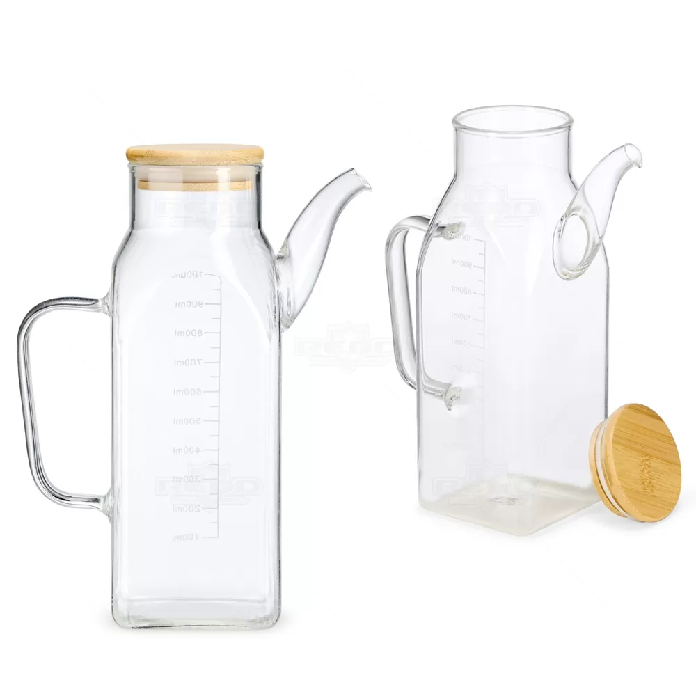Jarra fabricada em vidro borossilicato. Capacidade de 1 litro. Corpo com marcação de volume para medição precisa de líquidos. Material resistente a variações de temperatura, indicado para bebidas quentes ou frias. Possui tampa em bambu com anel de vedação em silicone, que auxilia na vedação e evita vazamentos. O bico conta com tampa protetora em silicone, proporcionando maior segurança, higiene e controle no armazenamento e no serviço. Indicada para servir ou armazenar líquidos como água, sucos, chás, leite, azeite, vinagre e outras bebidas, oferecendo praticidade no preparo e no uso diário, tanto em ambientes domésticos quanto funcionais. Uma opção elegante e versátil para a cozinha ou mesa, combinando resistência, design moderno e acabamento sofisticado, ideal para quem busca funcionalidade aliada a um visual clean e contemporâneo.