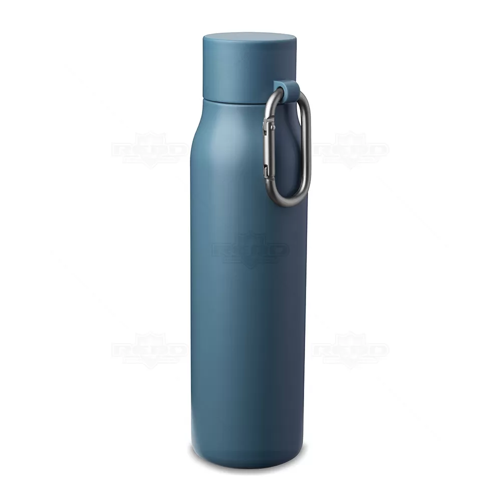 Garrafa térmica com capacidade de 550 ml. Estrutura com parede dupla em inox reciclado, sendo exterior em inox 304 e interior em inox 201, indicada para conservação térmica de bebidas quentes ou frias. Possui acabamento externo com pintura a pó, proporcionando maior resistência e durabilidade. Conta com tampa em plástico PP e mosquetão em alumínio, facilitando o transporte e a fixação em mochilas ou bolsas. Produto resistente, funcional e de fácil manuseio. Indicada para uso diário, atividades ao ar livre, trabalho, estudos, academia e deslocamentos, mantendo a temperatura da bebida por mais tempo com praticidade. Uma opção funcional e sustentável para quem busca desempenho térmico, resistência e design moderno, ideal para uso pessoal ou como brinde corporativo alinhado a práticas conscientes.