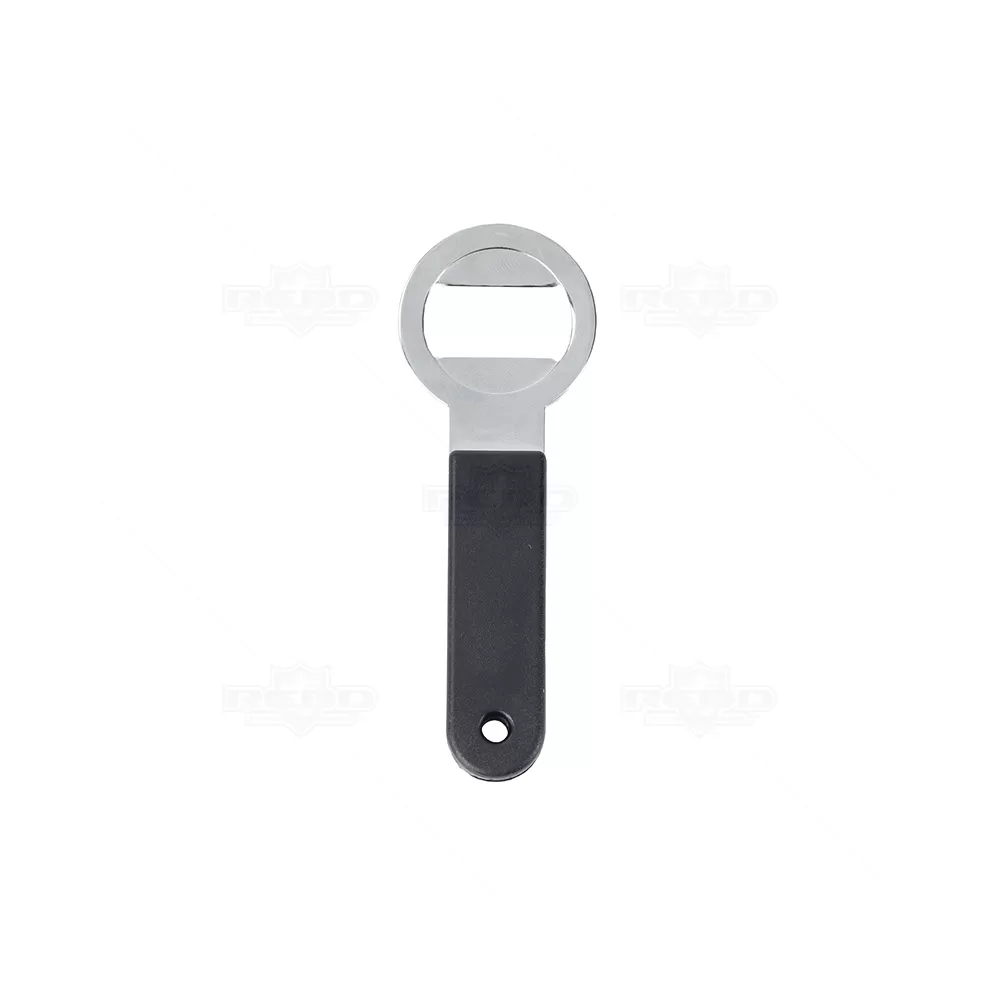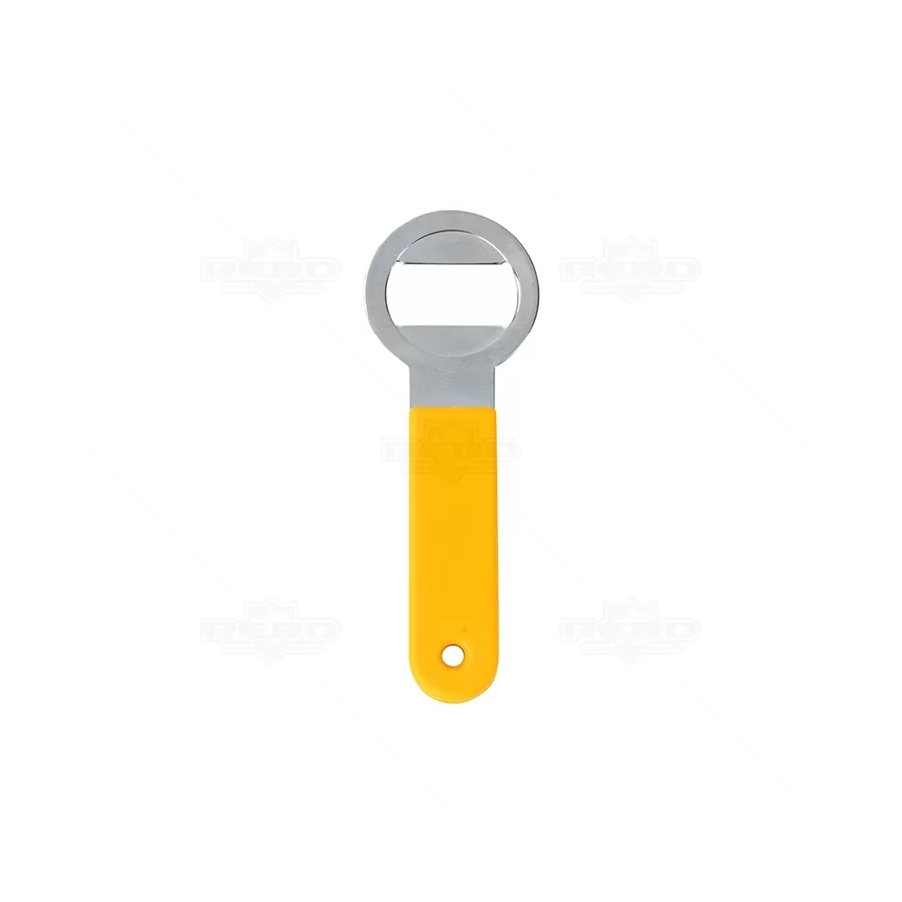 Abridor de garrafas com estrutura em aço carbono, garantindo resistência e durabilidade no uso diário. Possui argola integrada, que facilita o manuseio e também permite pendurar ou acoplar a chaveiros. O cabo conta com revestimento em plástico ABS, proporcionando melhor pegada, conforto e segurança durante a utilização. Prático e funcional, é ideal para uso doméstico, bares, eventos, churrascos e como brinde promocional personalizado, oferecendo excelente custo-benefício e ampla aceitação.
