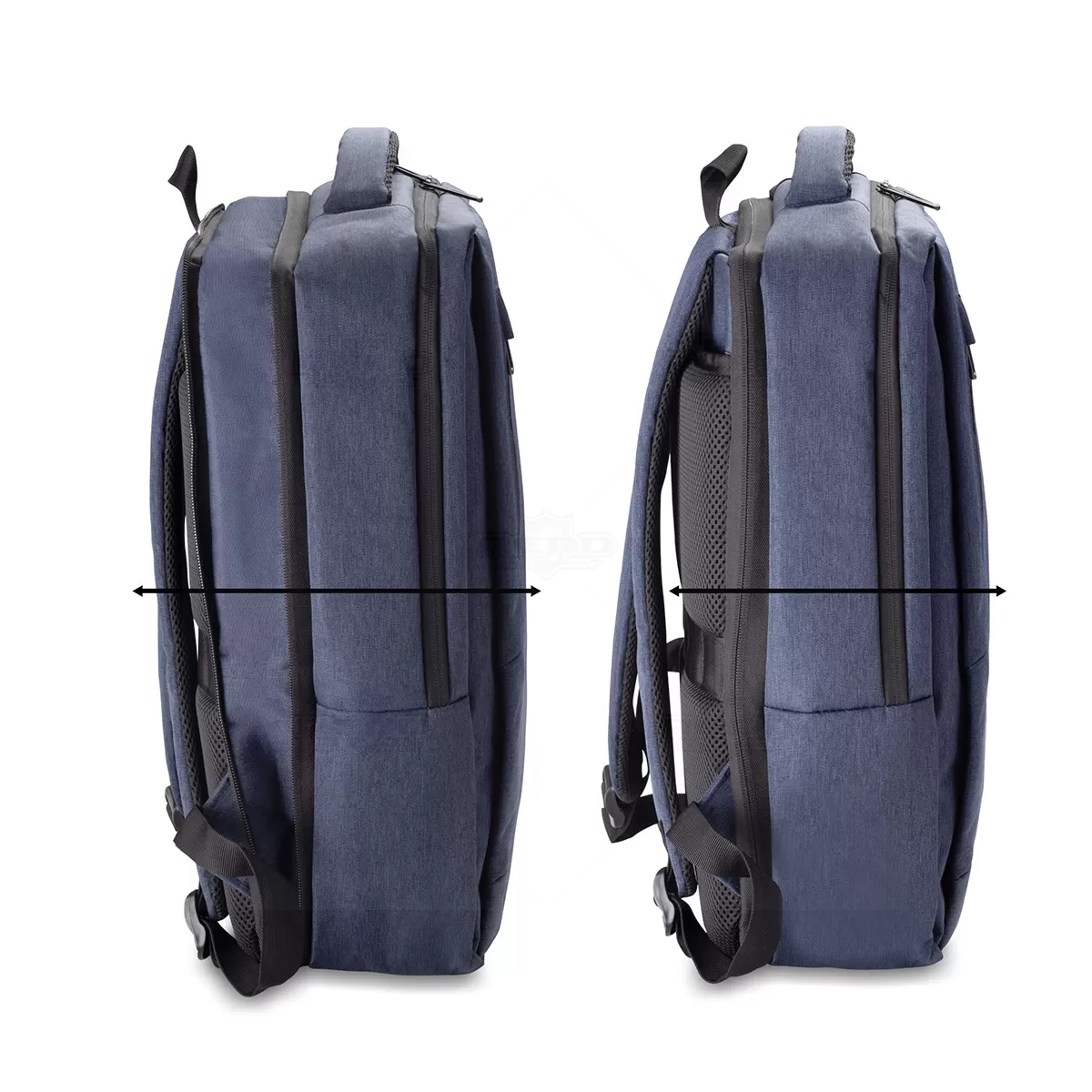 Mochila para notebook de 15,6”, confeccionada em poliéster 600D no exterior e poliéster 210D no interior, garantindo resistência e quazlidade. Possui área expansível com fechamento em zíper, proporcionando maior capacidade conforme a necessidade. Conta com conector USB externo na lateral, facilitando o carregamento de dispositivos (necessário uso de power bank, não incluso). Dispõe de compartimento frontal com zíper e compartimento principal com divisórias internas para organização de pequenos objetos tais como, chaves, caneta, periféricos e também, tablet e notebook. Apresenta alça traseira para encaixe em mala de viagem (alça trolley), além de alça de mão e alças de ombro acolchoadas, oferecendo conforto e praticidade no transporte. Indicada para uso profissional, estudos, viagens e deslocamentos diários, é uma excelente opção para brindes corporativos personalizados, unindo funcionalidade, organização e design moderno.