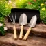 Kit de jardinagem com três peças em aço inox 410 e cabos de madeira, desenvolvido para oferecer resistência, durabilidade e conforto no manuseio. O conjunto é composto por um ancinho de três pontas, uma pazinha estreita e uma pazinha larga, atendendo diferentes necessidades no preparo do solo, plantio e manutenção de vasos e canteiros. O aço inox 410 garante maior robustez e proteção contra corrosão, enquanto os cabos de madeira proporcionam pegada firme e agradável, favorecendo o uso contínuo. Acompanha estojo em Oxford com fechamento em velcro, que facilita o armazenamento e o transporte organizado das ferramentas. Compacto e funcional, é ideal para jardinagem doméstica e cuidados com plantas em ambientes internos ou externos. Também é uma excelente opção para brindes promocionais, eventos corporativos e presentes personalizados voltados ao público que aprecia jardinagem e sustentabilidade.