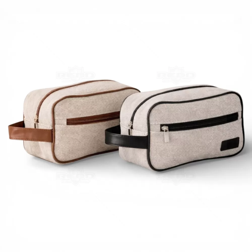 A nécessaire confeccionada em lona é uma opção resistente e funcional para quem busca organização com estilo. Seu material em lona proporciona durabilidade e acabamento diferenciado, enquanto o fechamento em zíper garante segurança no armazenamento dos itens. Possui bolso frontal que facilita o acesso a objetos menores e compartimento principal com três bolsos internos, permitindo melhor separação e organização de produtos de higiene, cosméticos e acessórios. Conta ainda com alça lateral que oferece praticidade no transporte e plaquinha costurada em couro sintético, agregando um detalhe sofisticado ao design. Versátil, a nécessaire é ideal para viagens, academia ou uso diário, mantendo tudo organizado de forma eficiente. Também se destaca como excelente escolha para brindes promocionais, eventos corporativos e ações de marketing, além de ser uma alternativa prática para presentes personalizados que valorizam a identidade da marca com utilidade e bom acabamento.