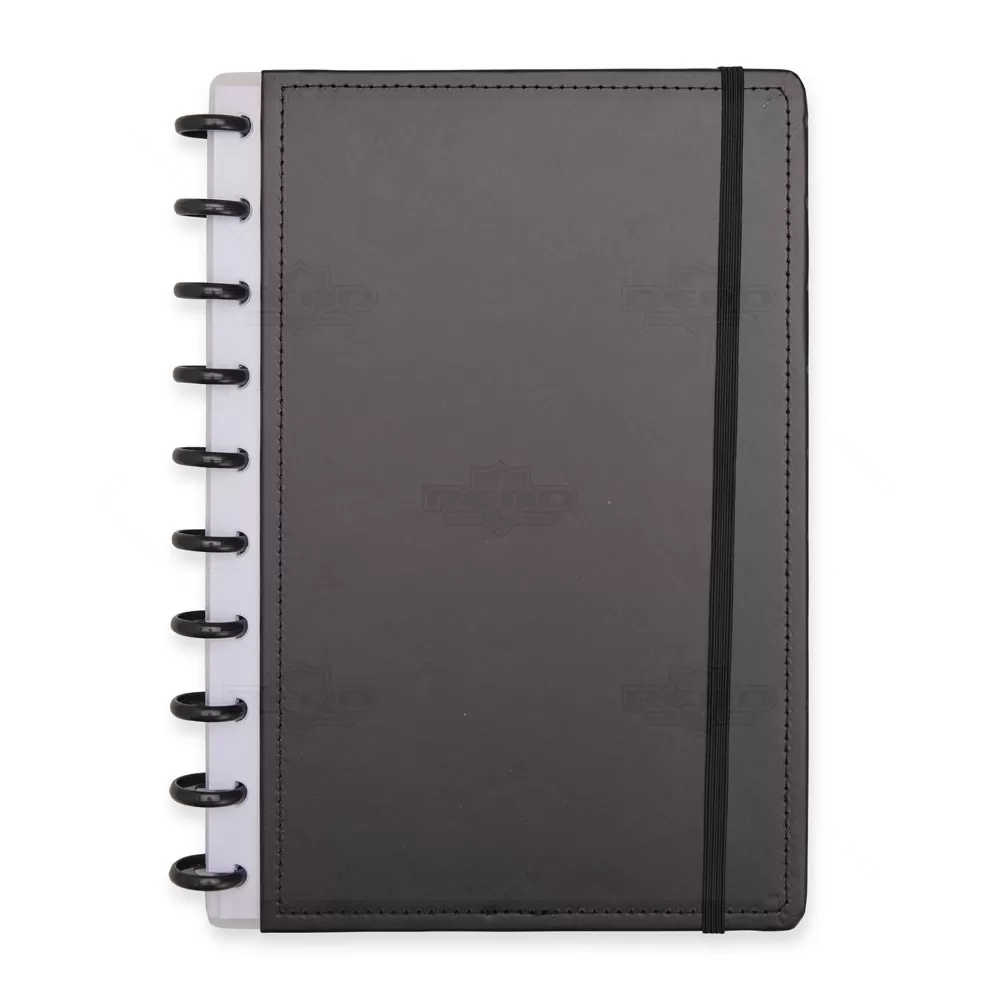 Bloco de anotações personalizado com capa dura em papelão resistente, ideal para anotações organizadas e práticas. Possui encadernação em discos plásticos reposicionáveis que facilitam a adição ou remoção de folhas pautadas, garantindo flexibilidade no uso. O fechamento com elástico assegura que as folhas fiquem protegidas e o conteúdo sempre seguro, conferindo praticidade para o dia a dia. Com aproximadamente 80 páginas brancas pautadas, é perfeito para registros, reuniões e planejamento. Ao oferecer este brinde, sua marca ganha visibilidade constante, associada à funcionalidade e qualidade. Ideal para brindes corporativos e eventos empresariais, promovendo organização com um toque personalizado.