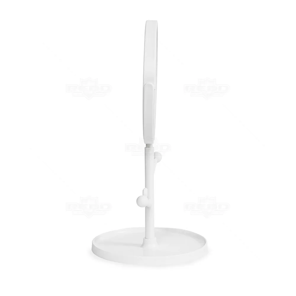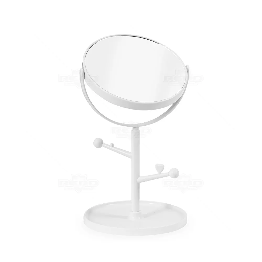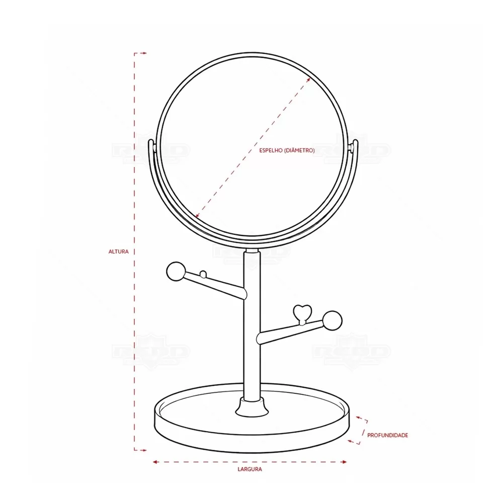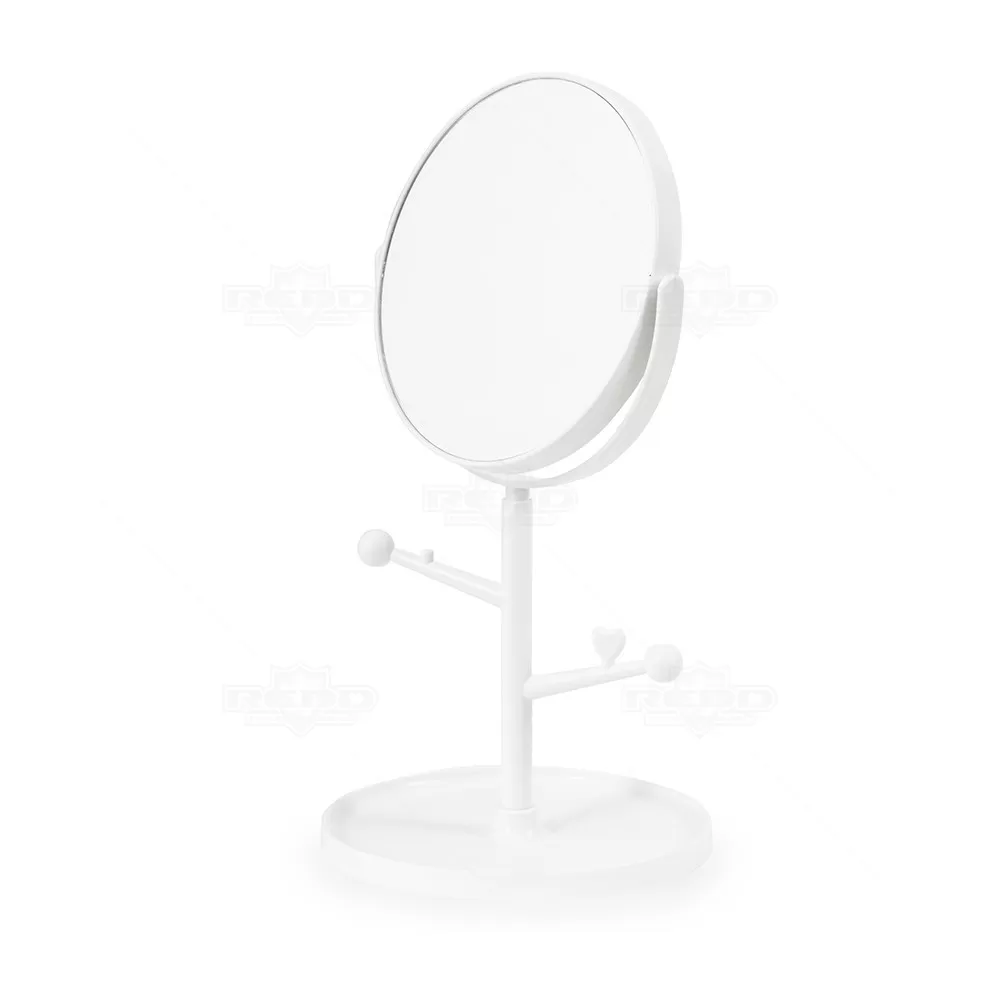 Espelho de mesa dupla face sem aumento, desenvolvido com estrutura em plástico resistente que proporciona leveza, durabilidade e estabilidade durante o uso diário. O espelho possui design funcional com base circular que auxilia na organização de pequenos objetos, permitindo manter itens de uso frequente sempre ao alcance. Sua estrutura conta ainda com ganchos laterais integrados, ideais para apoiar acessórios como anéis, brincos, colares ou outros itens pessoais, contribuindo para uma rotina mais prática e organizada. O espelho dupla face possibilita diferentes ângulos de visualização, facilitando atividades como cuidados pessoais, maquiagem ou ajustes rápidos no visual. O formato compacto e o acabamento discreto tornam o produto adequado para uso em mesas, bancadas ou penteadeiras, complementando ambientes com praticidade e organização. A partir da metade de seu uso funcional, o espelho de mesa também se destaca como uma excelente alternativa para brinde promocional em campanhas de marketing, eventos corporativos, ações institucionais ou como presente personalizado para clientes e colaboradores.