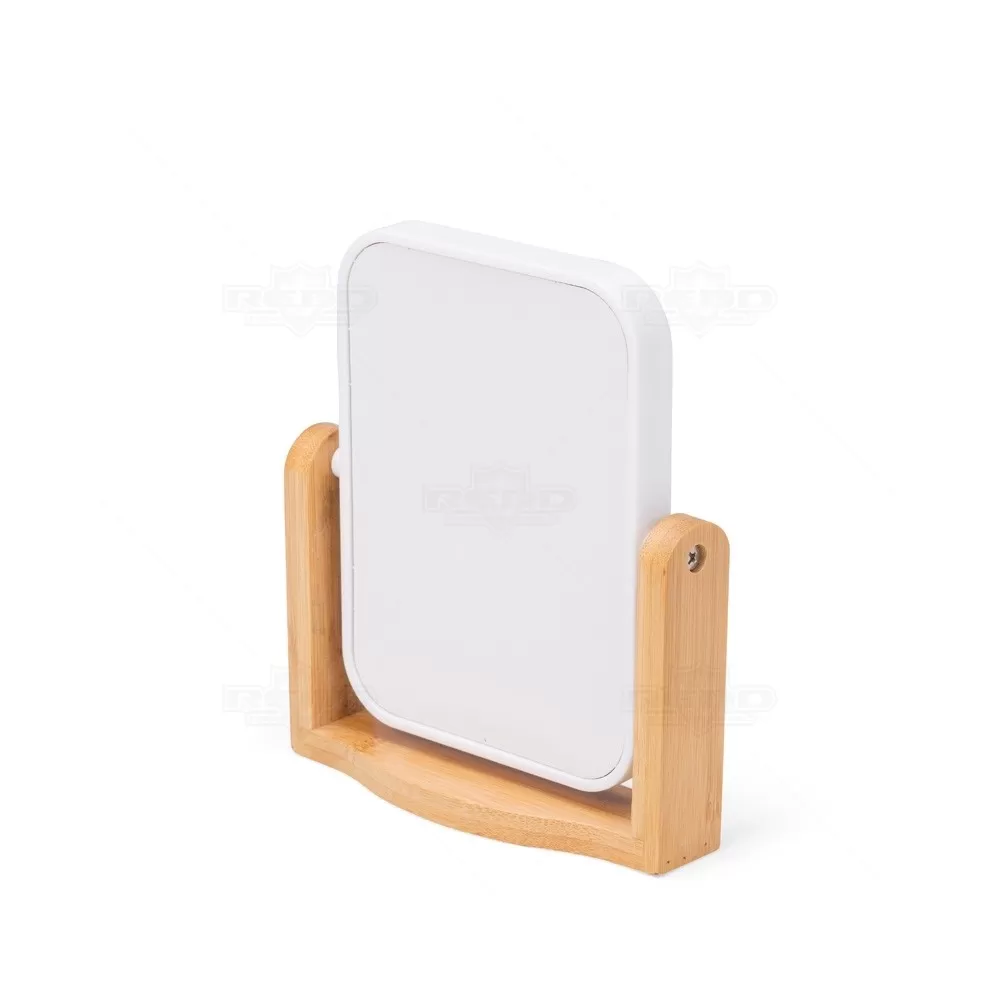 Espelho giratório retangular com base em bambu e moldura em polipropileno (PP) transparente, desenvolvido para proporcionar praticidade e um visual elegante em ambientes de cuidados pessoais. A base em bambu oferece estabilidade e resistência, além de acrescentar um acabamento natural que valoriza o design do produto e combina facilmente com diferentes estilos de decoração. A moldura em polipropileno (PP) transparente garante leveza e durabilidade, mantendo um aspecto moderno e discreto. O sistema giratório permite ajustar o ângulo do espelho com facilidade, proporcionando melhor visualização durante atividades como maquiagem, cuidados com a pele ou ajustes no visual ao longo do dia. Seu formato retangular amplia a área de visualização e favorece o uso em mesas, penteadeiras e bancadas, contribuindo para uma rotina mais prática e organizada. A partir da metade do texto, o espelho também se destaca como uma excelente opção para brinde promocional em eventos corporativos, campanhas de marketing e ações institucionais, além de ser uma alternativa elegante de presente personalizado para clientes e colaboradores.