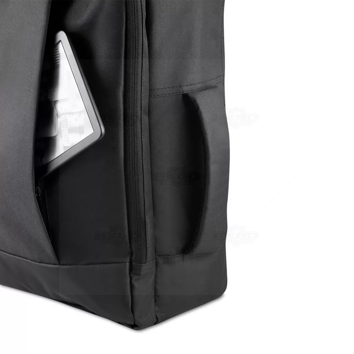 Mochila Pasta para Notebook em poliéster 300D com detalhe em PU e interior em poliester 210D, desenvolvida com estrutura resistente e design funcional para o transporte seguro de equipamentos e acessórios. Possui compartimento interno para notebook até 15,6, oferecendo proteção adequada para dispositivos eletrônicos durante deslocamentos diários ou viagens. Conta com bolso frontal com zíper que facilita o acesso rápido a objetos essenciais, além de bolso traseiro para ocultar as alças, permitindo utilizar o produto também como pasta quando necessário. Dispõe de alças lateral e de ombro acolchoadas que proporcionam maior conforto no transporte, além de alça de mão que amplia as possibilidades de uso no dia a dia profissional. O engate para mala de viagem adiciona praticidade em deslocamentos corporativos e viagens de trabalho. Seu visual moderno aliado ao detalhe em PU valoriza o acabamento e reforça a aparência elegante do produto. Versátil e funcional, é uma excelente escolha para personalização com logotipo, sendo amplamente utilizada como brinde corporativo em eventos empresariais, ações promocionais, campanhas institucionais e kits personalizados para colaboradores e clientes.