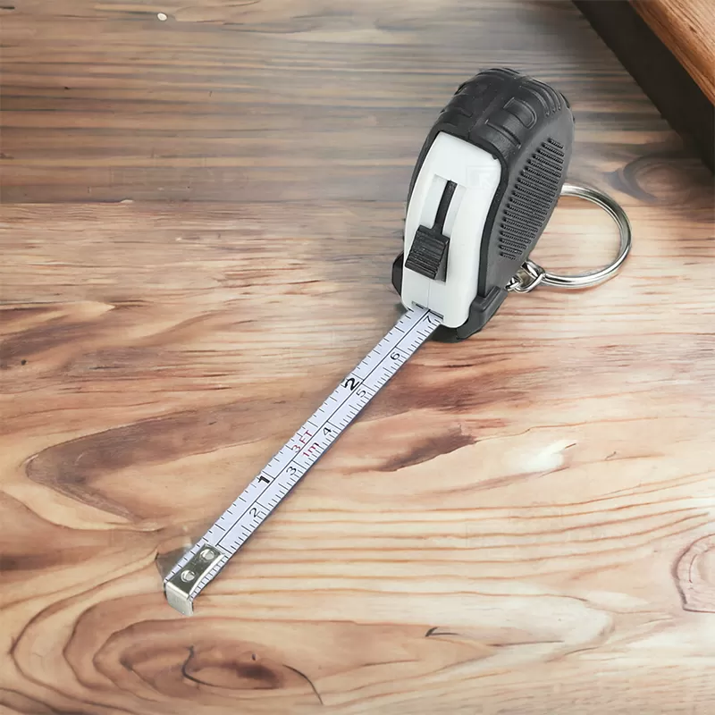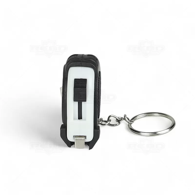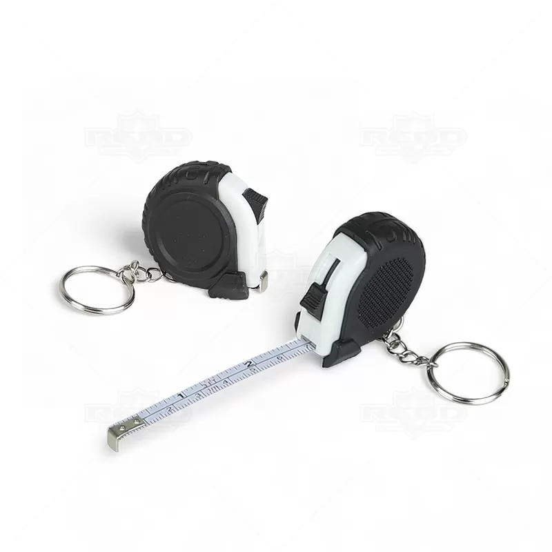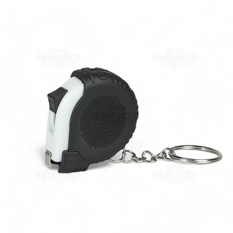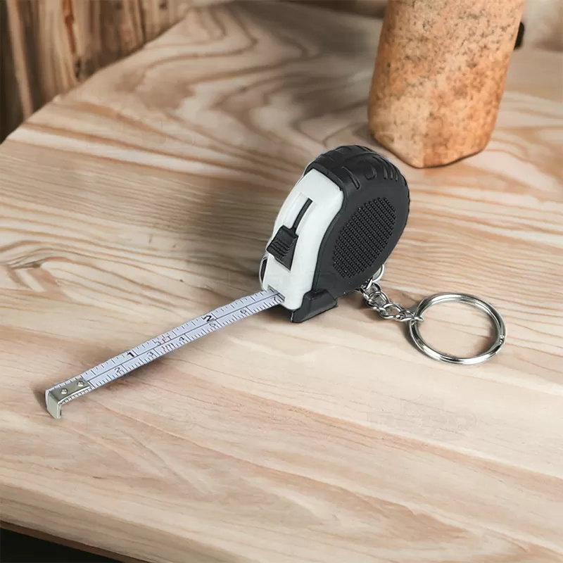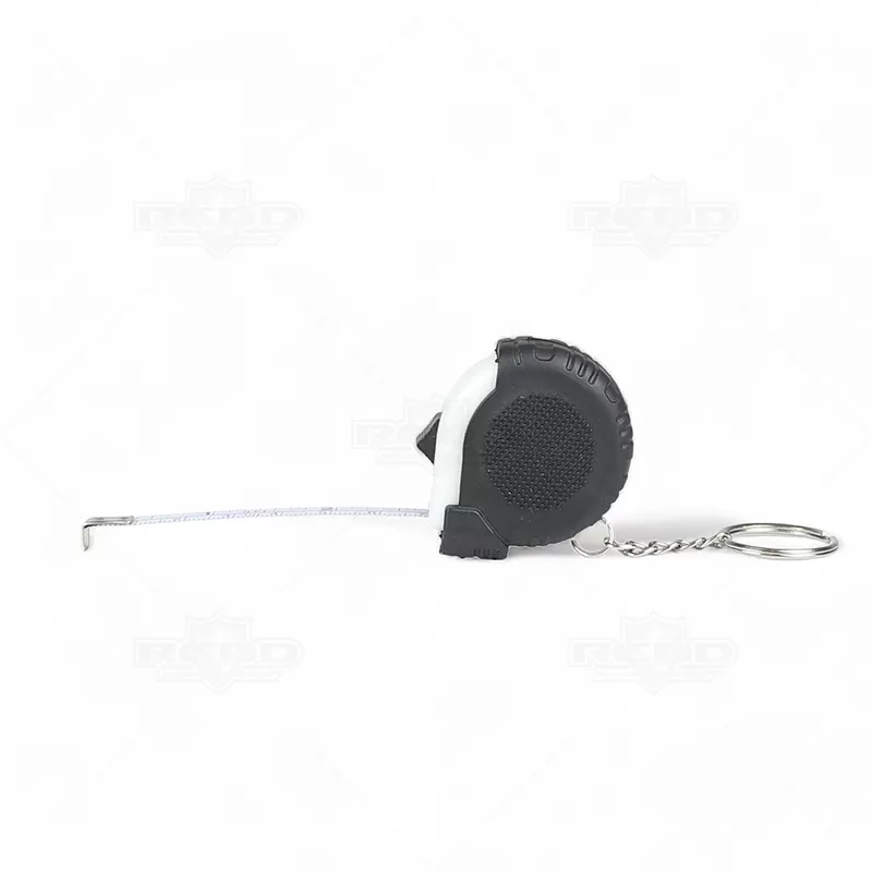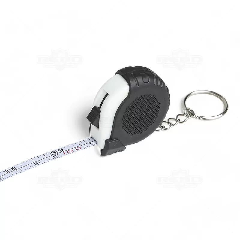Trena de 1 metro personalizada produzida com material emborrachado, possui trena retrátil com botão superior trava / destrava e argola de metal. Ideal para divulgar sua empresa em eventos corporativos, brindes personalizados e campanhas promocionais. Imagem ilustrativa.