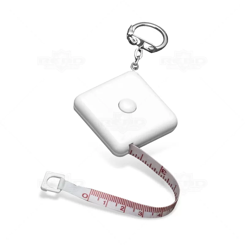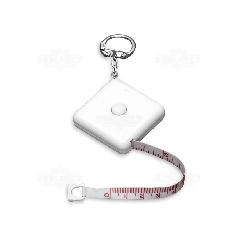 Fita métrica de 1 metro personalizada produzida em ABS, possui frente lisa, verso com botão de trava e corrente de metal com chaveiro. Ideal para divulgar sua empresa em eventos corporativos, brindes personalizados e campanhas promocionais.