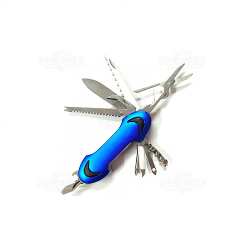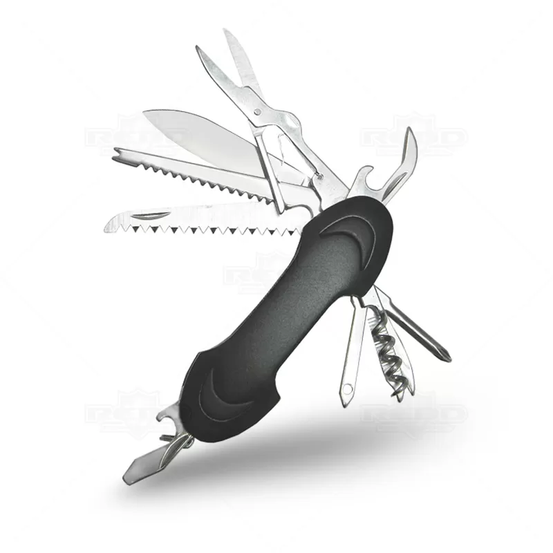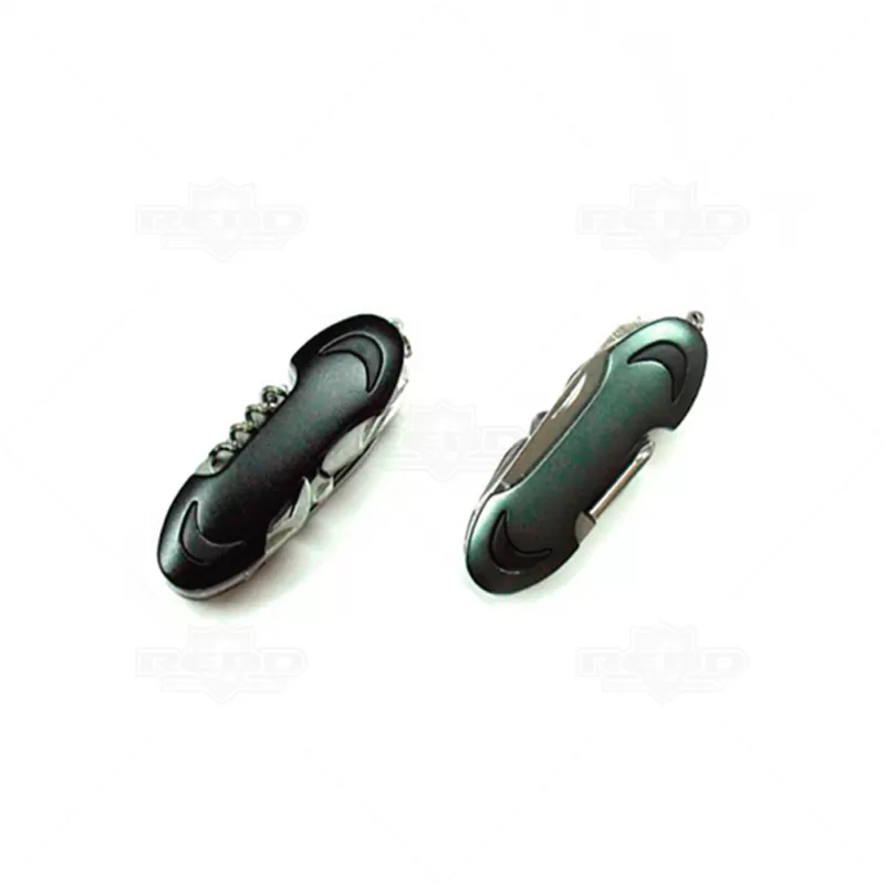 Canivete com 11 funções personalizado produzido em metal, possui lâmina de Corte, Serrilha (com escarilhador para limpar peixe), Serra Madeira, Mini Tesoura, Abridor de Latas, Abridor de garrafas, Chave Philips, Saca rolhas, Agulha de sutura, Lâmina de remoção de limpeza e Lixa. Ideal para divulgar sua empresa em eventos corporativos, brindes personalizados e campanhas promocionais.