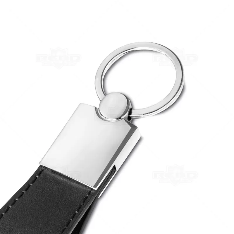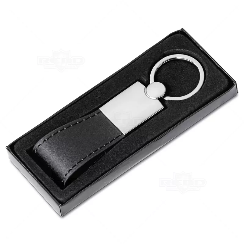 Chaveiro de metal personalizado com placa frontal diferenciada, alça em material sintético inferior e argola de metal. Ideal para divulgar sua empresa em eventos corporativos, brindes personalizados e campanhas promocionais.