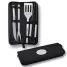 Kit churrasco com 4 peças material de Inox, acompanha estojo em nylon com placa de metal para gravação.